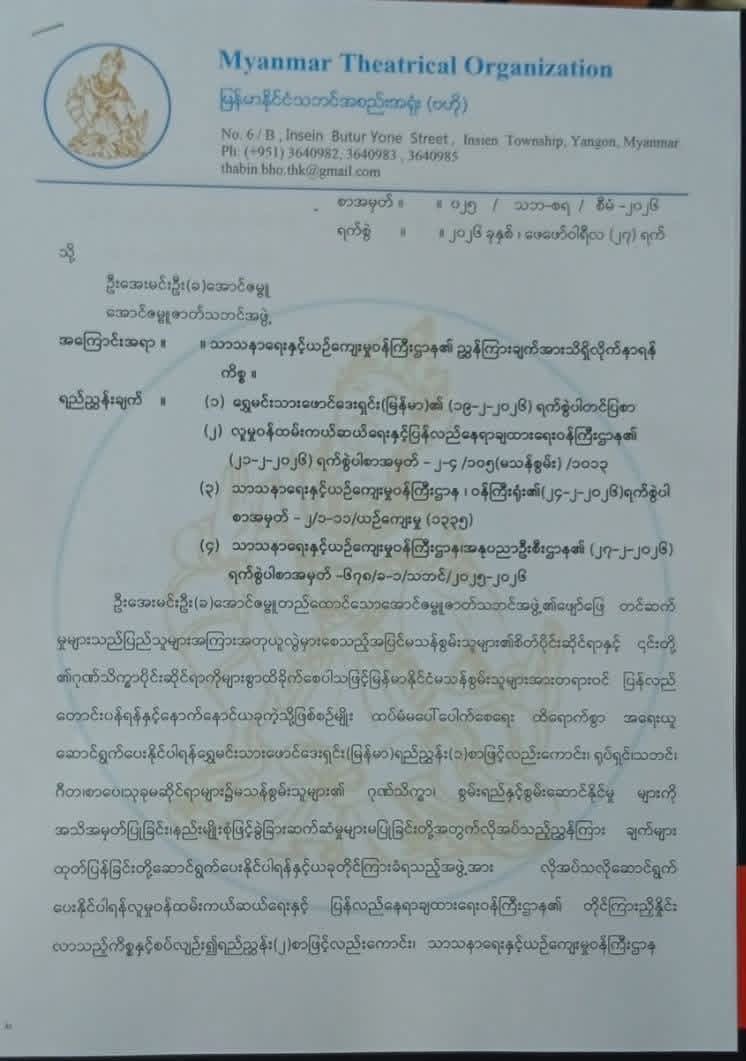 အောင်ဇမ္ဗူ ဇာတ်သဘင်အား ပွဲကပြခွင့် တစ်နှစ်တိတိ ပိတ် ခံရ