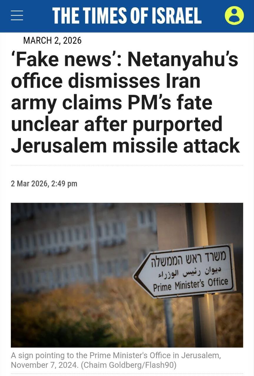 ဂျေရုဆလင်မြို့ကို ပစ်မှတ်ထားသည့် ဒုံးကျည်တိုက်ခိုက်မှုအပြီးတွင် ဝန်ကြီးချုပ်၏ ကံကြမ္မာမှာ မရေမရာဖြစ်နေသည်ဟူသော အီရန်၏ ပြောကြားချက်ကို ဝန်ကြီးချုပ် ဘင်ဂျမင် နေတန်ရာဟု၏ ရုံးခန်းက "သတင်းအမှား" (Fake news) အဖြစ် ငြင်းဆိုလိုက်သည်။ (နေတန်ရာဟုသည် နောက်ပိုင်းတွင် လူသေဆုံးမှုရှိခဲ့သည့် Beit Shemesh ဒုံးကျည်ကျရောက်ရာနေရာသို့ သွားရောက်ခဲ့ပြီး မိန့်ခွန်းပြောကြားခဲ့သည်။)အီရန်၏ တစ်ပိုင်းတစ်စ အစိုးရပိုင် Fars သတင်းဌာနက ထုတ်လွှင့်သည့် ဗီဒီယိုထုတ်ပြန်ချက်တွင် အီရန်၏ Khaibar ဒုံးကျည်များသည် နေတန်ရာဟု၏ ရုံးခန်းနှင့် လေတပ်ဦးစီးချုပ် Tomer Bar ၏ နေအိမ်တို့ကို အလစ်အငိုက်တိုက်ခိုက်မှုအတွင်း အောင်မြင်စွာ ထိမှန်ခဲ့ကြောင်း စစ်ဘက်ပြောရေးဆိုခွင့်ရှိသူတစ်ဦးက ပြောကြားခဲ့သည်။ဂျေရုဆလင် မြို့တော်အတွင်း လေကြောင်းရန်သတိပေး အချက်ပေးသံများ ထွက်ပေါ်ခဲ့သော်လည်း ဒုံးကျည်ထိမှန်မှုတစ်စုံတစ်ရာ ရှိကြောင်း သတင်းများ မထွက်ပေါ်ခဲ့ပေ။ နေတန်ရာဟု၏ ရုံးခန်းမှာလည်း အစစအရာရာ ပုံမှန်အတိုင်းပင် ရှိနေသည်။ အီရန်ပြောရေးဆိုခွင့်ရှိသူက ကူဝိတ်နိုင်ငံအထက်တွင် အမေရိကန် တိုက်လေယာဉ် သုံးစင်းကို အီရန်က ပစ်ချခဲ့သည်ဟုလည်း ဆိုသည်။ သို့သော် အဆိုပါ လေယာဉ်သုံးစင်းမှာ ကူဝိတ်လေကြောင်းရန်ကာကွယ်ရေးတပ်ဖွဲ့၏ မတော်တဆ မှားယွင်းပစ်ခတ်မှု(Friendly fire) ကြောင့် ထိမှန်ခဲ့ခြင်းသာဖြစ်ပြီး၊ မိမိတပ်ဖွဲ့က မှားယွင်းပစ်ခတ်မိခြင်းမဟုတ်သလို အီရန်လက်ချက်ကြောင့်လည်း မဟုတ်ကြောင်းအမေရိကန်က ပြောကြားထားသည်။