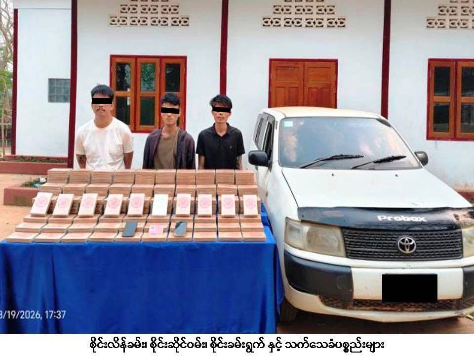 မတ်လ ၁၉ ရက်နေ့ ၀၇၄၀ အချိန် မူးယစ်ဆေးဝါးတားဆီးနှိမ်နင်းရေးရဲတပ်ဖွဲ့မှ တပ်ဖွဲ့ဝင်များပါဝင်သော ပူးပေါင်းအဖွဲ့သည် သက်သေများနှင့်အတူ ကွန်ဟိန်းမြို့နယ်၊ ဆိုင်းမွန်ကျေးရွာအနီး၊ ကွန်ဟိန်း - ခိုလမ်သွားကားလမ်းတွင် မော်တော်ယာဉ်များအား စစ်ဆေးရှာဖွေစဉ် စိုင်းလိန်ခမ်း မောင်းနှင်ပြီး စိုင်းဆိုင်ဝမ်း လိုက်ပါလာသည့် TOYOTA PROBOX အမျိုးအစား မော်တော်ယာဉ်အား ရပ်တန့်စစ်ဆေးရှာဖွေရာ ယာဉ်ပေါ်တွင် သိုဝှက်သယ်ဆောင်လာသော ဘိန်းဖြူဘလောက်တုံး ၂၀၀ တုံး၊ အလေးချိန် ၇၀ ကီလို(ဒေသကာလတန်ဖိုးငွေကျပ်သိန်း ၈,၄၀၀)နှင့် လက်ကိုင်ဖုန်း ၁ လုံးတို့အား တွေ့ရှိသိမ်းဆည်းရမိခဲ့ပြီး ကွင်းဆက်ဖော်ထုတ်ချက်အရ ၁၁၃၀ အချိန် အဆိုပါ ဘိန်းဖြူဘလောက်တုံးများ သယ်ဆောင်ခိုင်းသူ စိုင်းခမ်းရွက်(ခ)စိုင်းရွက် အား ၎င်းနေထိုင်သည့် ကွန်ဟိန်းမြို့နယ်၊ ကာလိမြို့၊ ရပ်ကွက်(၅)ရှိနေအိမ်တွင် လက်ကိုင်ဖုန်း ၁ လုံးနှင့်အတူ ထပ်မံဖမ်းဆီးရမိခဲ့သဖြင့် စိုင်းလိန်ခမ်း(၂၃)နှစ်၊ စိုင်းဆိုင်ဝမ်း(၂၆)နှစ် နှင့် စိုင်းခမ်းရွက်(ခ)စိုင်းရွက်(၃၁)နှစ်တို့အား ကွန်ဟိန်းမြို့မရဲစခန်းတွင် မူးယစ်ဆေးဝါးနှင့် စိတ်ကိုပြောင်းလဲစေသောဆေးဝါးများဆိုင်ရာဥပဒေအရ အမှုဖွင့် အရေးယူထားရှိပြီး ကွင်းဆက်များ ဆက်လက်ဖော်ထုတ်လျက်ရှိကြောင်းသိရပါသည်။