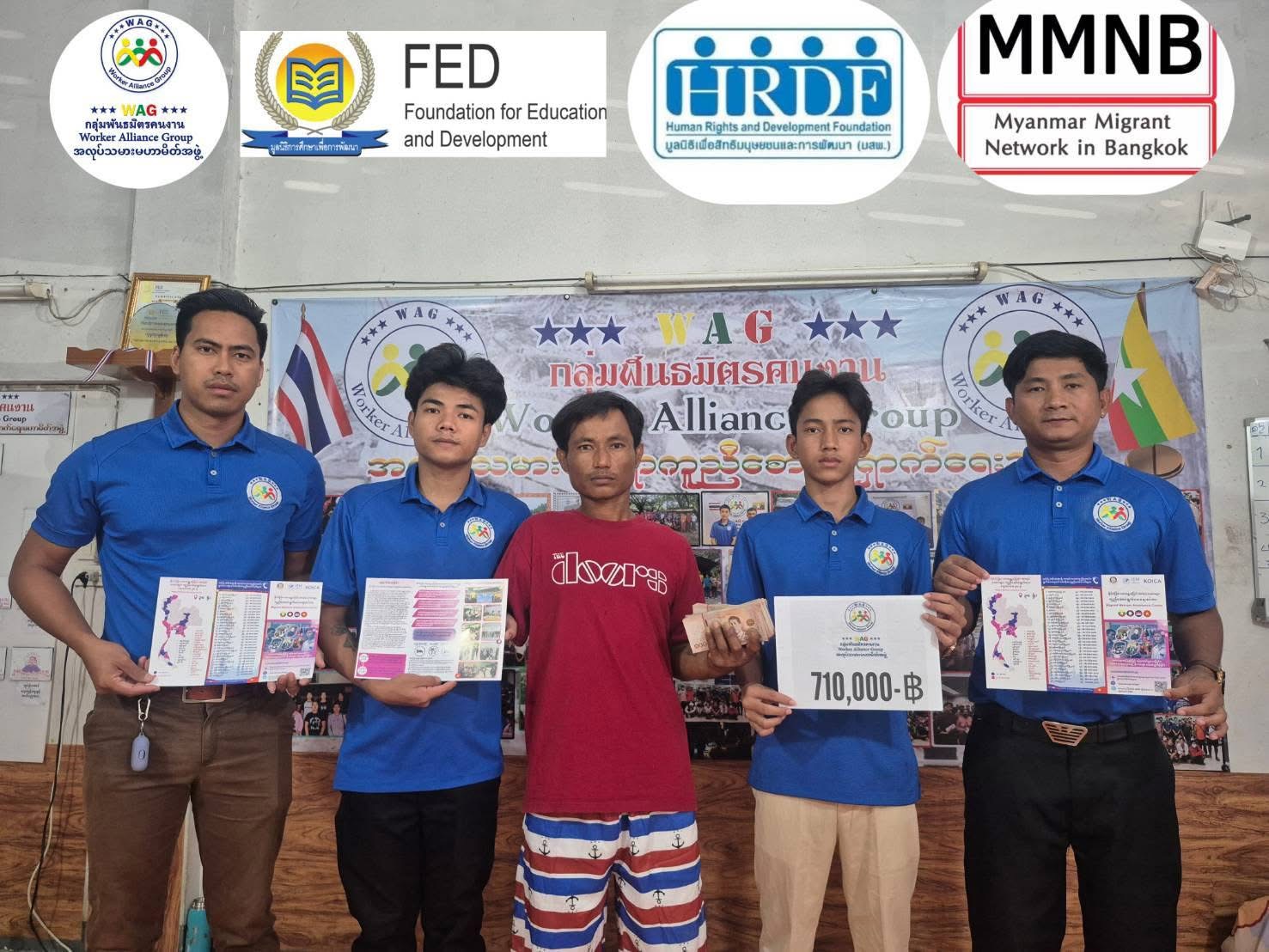 ထိုင်းနိုင်ငံရှိ လုပ်ငန်းခွင်အတွင်း စက်နှင့်ညှပ်၍ လက်ပြတ်သွားခဲ့သူ ကိုမျိုးဇော်အတွက် နစ်နာကြေး ဘတ် ၇ သိန်းကျော်နှင့် ယာဉ်တိုက်မှုကြောင့် သေဆုံးခဲ့ရသည့် ကိုသန့်ဇင်ဖြိုးအတွက် နစ်နာကြေး ဘတ် ၁၀ သိန်း (စုစုပေါင်း ဘတ် ၁၇ သိန်းကျော်) ကို WAG အဖွဲ့နှင့် မိတ်ဖက် NGO များက ကူညီဆောင်ရွက်ပေးမှုကြောင့် ၂၀၂၆ ခုနှစ်၊ မတ်လ ၂၄ ရက်တွင် အသီးသီးရရှိခဲ့ကြသည်။ ထိုင်းရောက်မြန်မာလုပ်သားများအနေဖြင့် လုပ်ငန်းခွင်အတွင်း ထိခိုက်မှုများရှိပါက အာမခံရှိသည်ဖြစ်စေ၊ မရှိသည်ဖြစ်စေ အခင်းဖြစ်ပြီး ၂ လအတွင်း သက်ဆိုင်ရာရုံးများသို့ အမြန်ဆုံးတိုင်ကြားရန်လည်း တိုက်တွန်းထားကြောင်း သိရှိရပါသည်။