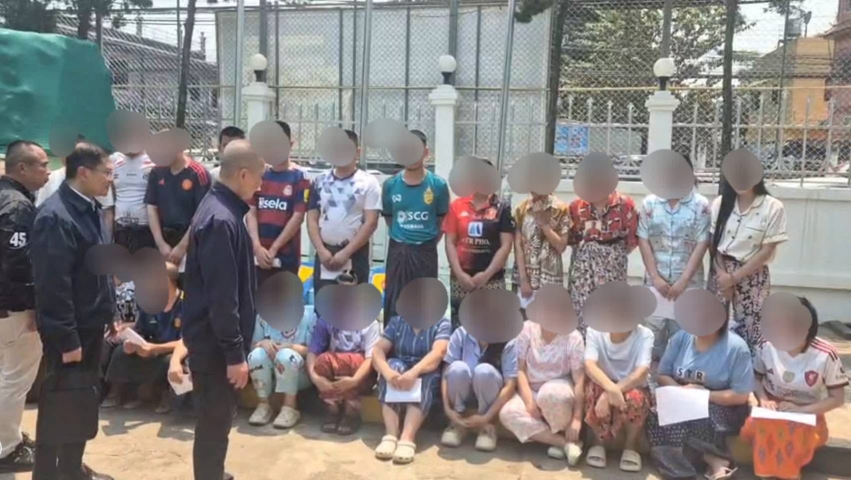 ရှမ်းပြည်နယ်၊ တာချီလိတ်မြို့ရှိ Golden Sky ဟိုတယ်ကို မြန်မာရဲတပ်ဖွဲ့က ဝင်ရောက်စီးနင်းစဉ် ဖမ်းဆီးရမိခဲ့သည့် ထိုင်းနိုင်ငံသား ၂၄ ဦး (အမျိုးသား ၁၁ ဦးနှင့် အမျိုးသမီး ၁၃ ဦး) ကို လက်ရှိတွင် တာချီလိတ်ရဲစခန်း၌ ထိန်းသိမ်းထားပြီး အီလက်ထရွန်နစ်ဆက်သွယ်ရေးဥပဒေ ချိုးဖောက်မှု၊ တရားမဝင်ဝင်ရောက်မှုတို့ဖြင့် အမှုဖွင့်ထားကြောင်း ၂၀၂၆ ခုနှစ်၊ မတ်လ ၂၄ ရက်တွင် သိရသည်။ ၎င်းတို့အား ထိုင်းဒုတိယရဲချုပ်ကိုယ်တိုင် လာရောက်စစ်ဆေးခဲ့ရာ ကနဦးအချက်အလက်များအရ ခြိမ်းခြောက်စေခိုင်းခံရသည့် အထောက်အထားမတွေ့ရဘဲ ကောလ်စင်တာနှင့် အွန်လိုင်းလောင်းကစားရုံးများတွင် မိမိဆန္ဒအလျောက် လာရောက်လုပ်ကိုင်သူများဖြစ်ကြောင်း သိရသည်။ ၎င်းတို့သည် မြန်မာနိုင်ငံတည်ဆဲဥပဒေအရ အီလက်ထရွန်နစ်ဥပဒေအတွက် ထောင်ဒဏ် ၅ နှစ်မှ ၇ နှစ်အထိလည်းကောင်း၊ တရားမဝင်ဝင်ရောက်မှုအတွက် ထောင်ဒဏ် ၆ လမှ ၅ နှစ်အထိလည်းကောင်း ကျခံရနိုင်ပြီး မြန်မာ့ဥပဒေလုပ်ထုံးလုပ်နည်းများ ပြီးပြတ်မှသာ ထိုင်းနိုင်ငံဘက်သို့ ပြန်လည်လွှဲပြောင်းနိုင်မည်ဖြစ်ကြောင်း သိရှိရပါသည်။
