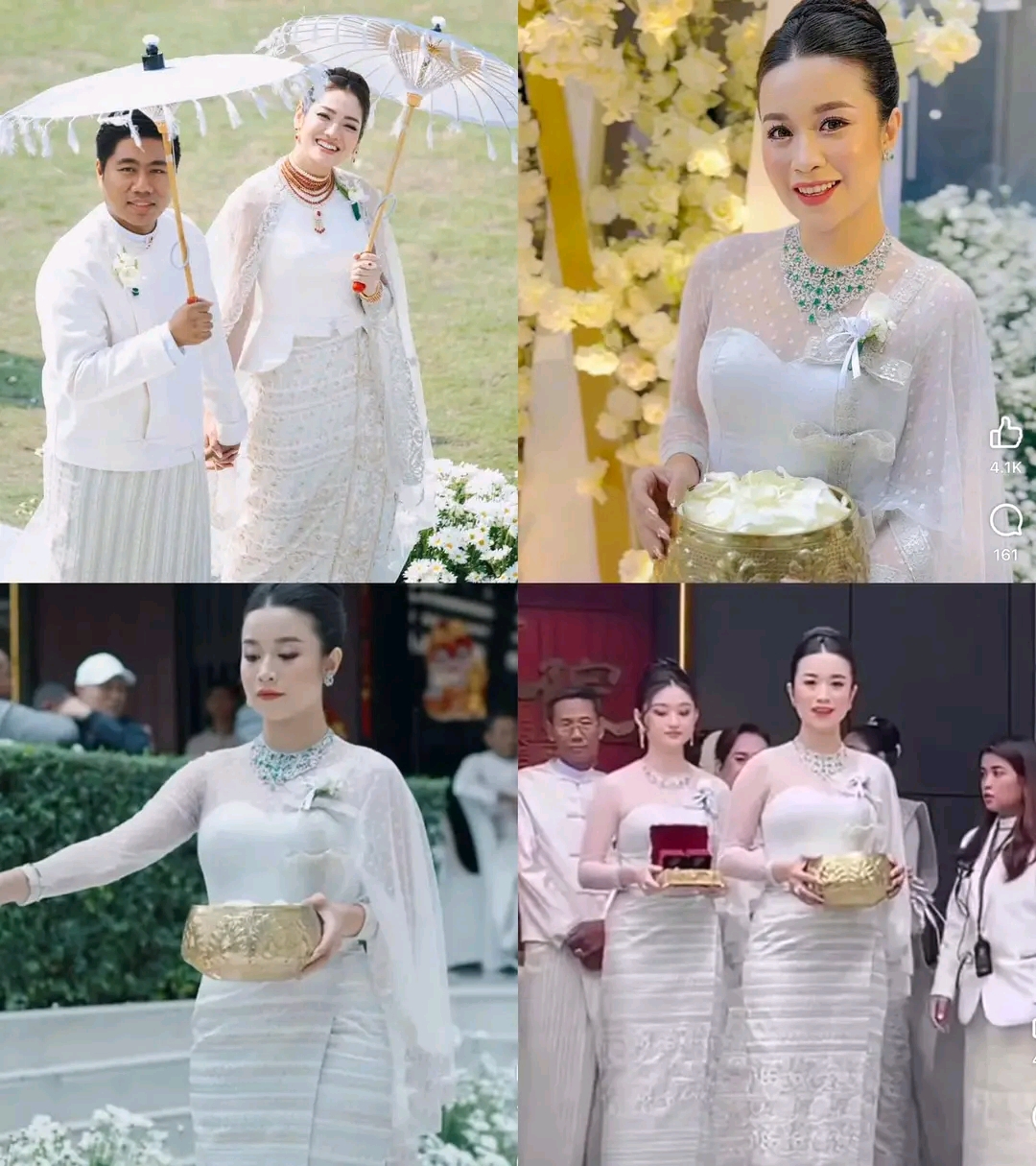 အောင်သမာဓိ ရွှေဆိုင်ပိုင်ရှင်ရဲ့ သမီးဖြစ်သူ မင်္ဂလာပွဲမှာ မင်္ဂလာပန်းကြဲခဲ့တဲ့ သရုပ်ဆောင်ခင်လှိုင်ရဲ့သမီးဖြစ်သူသဇင်ထူးမြင့်