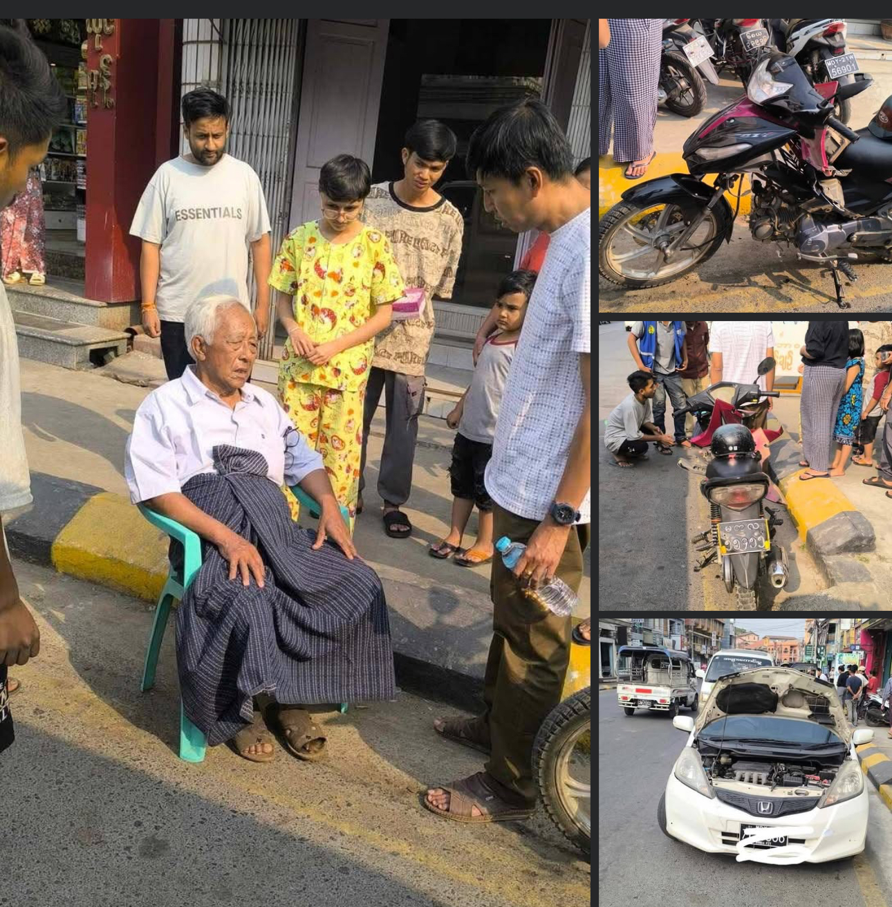 ပြင်ဦးလွင်မြို့၊ရကက(၃)၊မန္တလေး-လားရှိုးလမ်း၊ပါရမီမလိုင်မုန့်ဆိုင်အနီးတွင် ဆိုင်ကယ်နှင့် ကား မတော်တဆတိုက်မိ၍အသက်(၇၈)နှစ်အမျိုးသားကြီးတစ်ဦး ထိခိုက်ဒဏ်ရာရရှိပြီးပြည်သူ့ဆေးရုံကြီးသို့သန္တိသုခ အခမဲ့ လူမှုကူညီရေးအသင်း ၊အရေးပေါ်ယာဉ်ဖြင့်ပို့ဆောင်ကူညီခဲ့ကြောင်း သိရပါသည်။