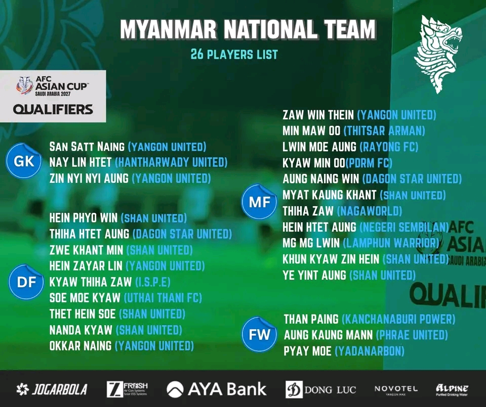 AFC ASIAN CUP QUALIFIERS (SAUDI ARABIA 2027) MYANMAR (Vs) AFGHANISTANအသင်းရဲ့ ပွဲထွက်လူစာရင်းထွက်ပေါ်