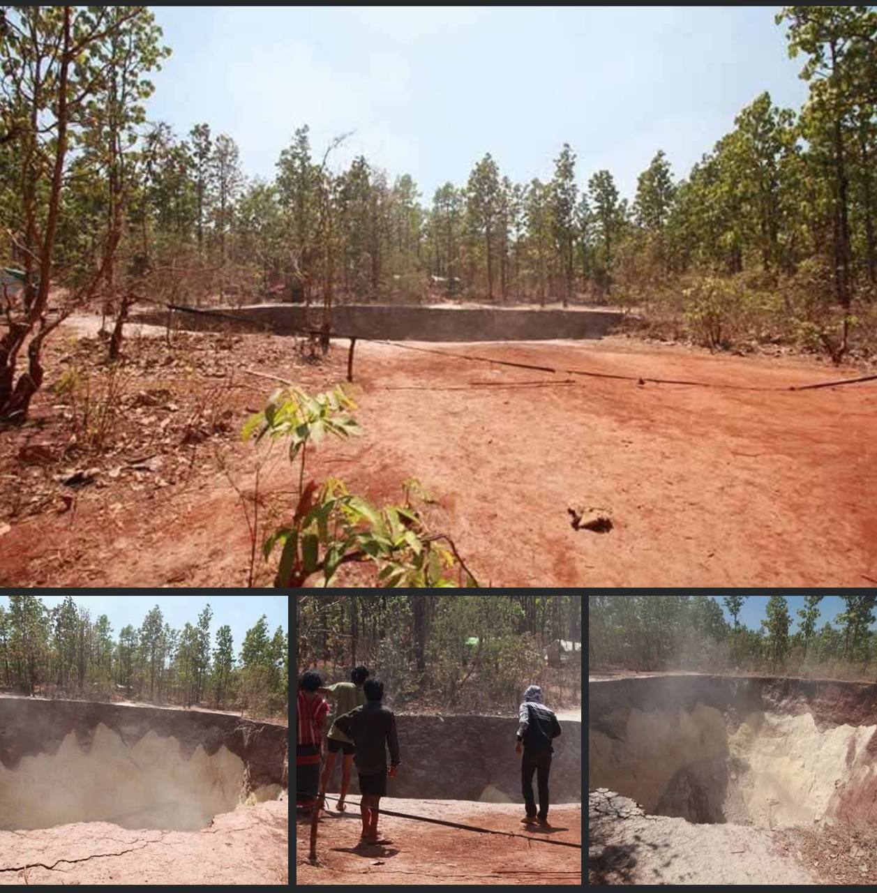 ကရင်နီပြည်၊ ဒီးမော့ဆိုမြို့နယ် အနောက်ဘက်ခြမ်း၊ ပဆေးလာကျေးရွာအနီးမှာ ပေ ၁၀၀ ကျော်နက်တဲ့ တွင်းတစ်ခု ပေါ်ပေါက်လာတာကြောင့် နေ့စဉ်နဲ့အမျှ စိုးရိမ်နေရတယ်လို့ ဒေသတွင်း စစ်ဘေးရှောင်တွေက ပြောပါတယ်။စစ်ကိုင်းနဲ့ မန္တလေးတိုင်းကို ဗဟိုပြုပြီး ၇.၇ မီတာစကေးပြင်းအားရှိတဲ့ ငလျင်လှုပ်ခတ်ပြီးတဲ့နောက် မတ်လ ၂၉ ရက်နေ့မှာ ပေါ်ပေါက်လာတာဖြစ်ပြီး နေ့စဉ်ဖြည်းဖြည်းချင်း တအိအိနဲ့ ပြိုကျနေတယ်လို့ ဆိုပါတယ်။အဲဒီတွင်းသည် အကျယ်ပေ ၁၀၀ ကျော်ရှိနိုင်ပြီး နေ့တိုင်းဆက် ပြိုကျနေမယ်ဆိုရင် ဒီထက်မက တွင်းပိုကျယ်လာနိုင်တဲ့အပြင် ပတ်ပတ်လည်က စစ်ဘေးရှောင်စခန်းတွေအပေါ်လည်း အန္တရာယ်ကျရောက်လာနိုင်တယ်လို့ သိရပါတယ်။အလားတူ ကရင်ပြည်၊ ကော့ဂရိတ်မြို့နယ်တောင်ပိုင်း၊ လန်းဖားရွာအနီးမှာလည်း မြေငလျင်ဒဏ်ကြောင့် ပေ ၃၀ ခန့်နက်တဲ့ တွင်းတွေအများအပြား ပေါ်ပေါက်လာတယ်လို့ သိရပါတယ်။