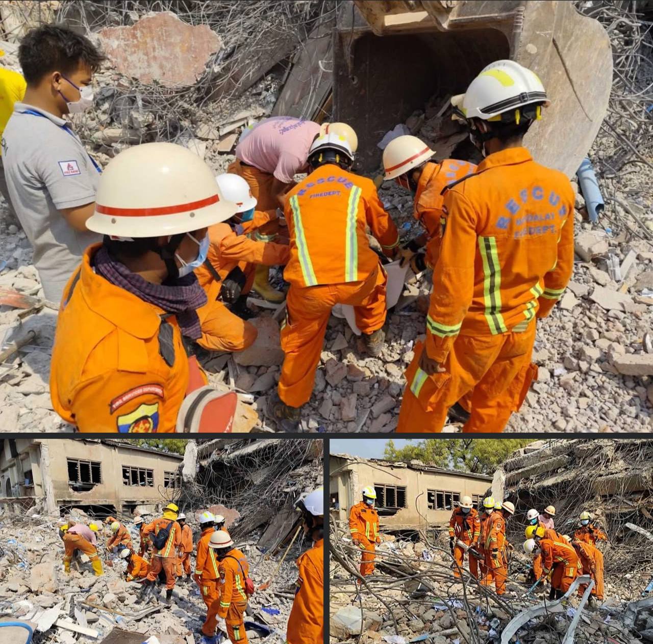 မန္တလေးတိုင်းဒေသကြီး၊ ပျော်ဘွယ်မြို့၊ ကမ္ဘောဇဘဏ်အဆောက်အဦးပြိုကျပျက်စီးမှု ရှာဖွေကယ်ဆယ်ရေး လုပ်ဆောင်ရာ ယနေ့ ဧပြီ (၂)ရက် နံနက် (၁၂)နာရီအချိန်ထိ အမျိုးသား (၁)ဦး၊ အမျိုးသမီး (၂)ဦး၏ ရုပ်အလေ-ာင်းများ ရှာဖွေတွေ့ရှိခဲ့ကြောင်း ပျော်ဘွယ်မြို့နယ်မီးသတ်စခန်းမှ သိရသည်။ရှာဖွေကယ်ဆယ်ရေးလုပ်ဆောင်ရာ ယနေ့ ဧပြီ (၂) ရက်၊ နံနက်ပိုင်းတွင် ေ-သဆုံးသူ အမျိုးသမီး (၂)ဦး ရုပ်အလေ-ာင်းအား ရှာဖွေတွေ့ရှိခဲ့ပြီး ဆက်လက်၍ ရှာဖွေကယ်ဆယ်ရေးလုပ်ငန်းများ လုပ်ဆောင်ရာ နေ့လယ် (၁၁)နာရီ (၄၃)မိနစ်အချိန်တွင် အမျိုးသား (၁)ဦး ရုပ်အလေ-ာင်းအား ထပ်မံရှာဖွေတွေ့ရှိခဲ့ကြောင်း သိရသည်။