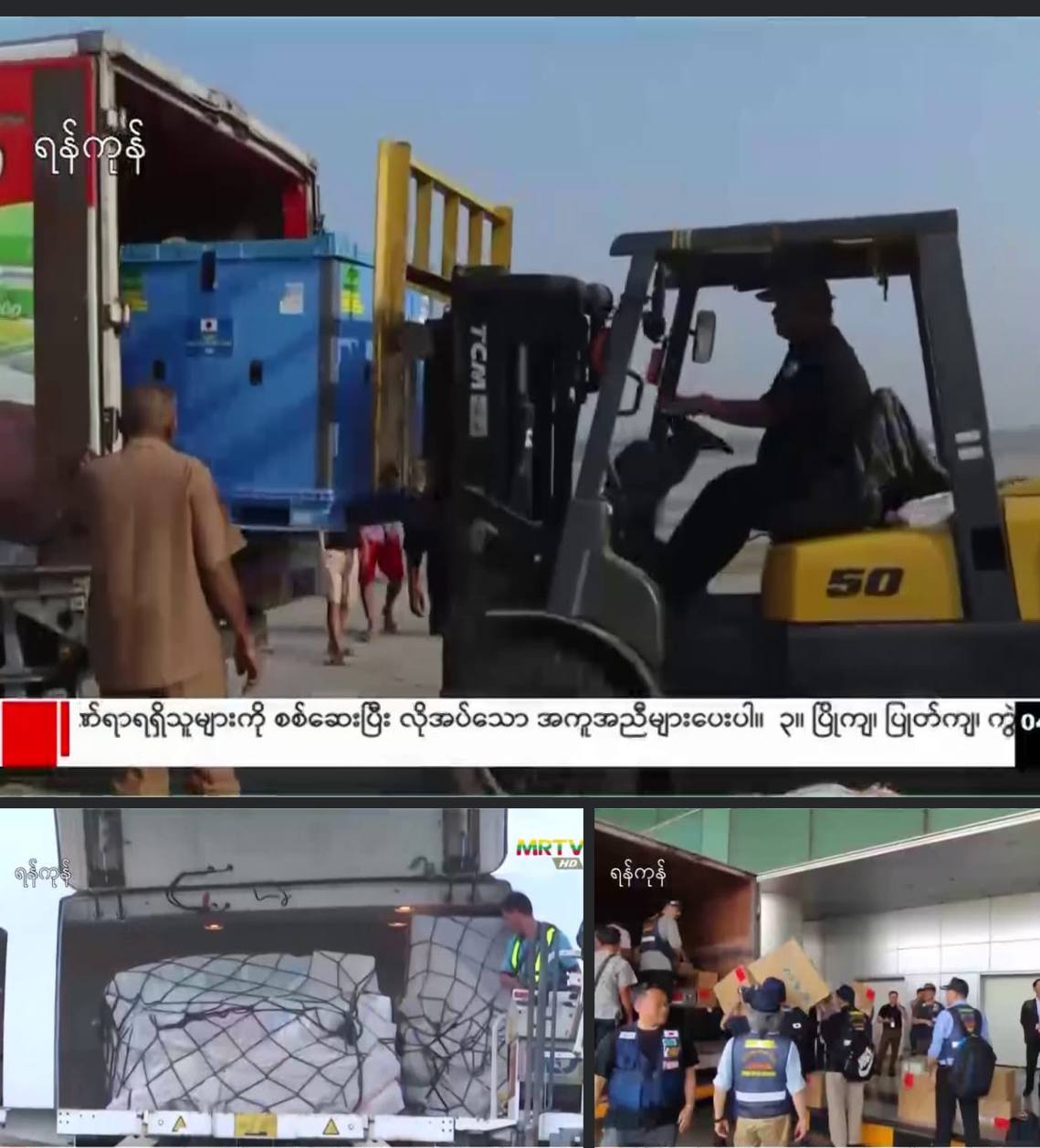 ဂျပန်နိုင်ငံရဲ့ သဘာဝဘေးအန္တရာယ်ကယ်ဆယ်ရေးအဖွဲ့ဟာ ဧပြီလ ၂ ရက်နေ့က လူသားချင်းစာနာ ထောက်ထားမှုဆိုင်ရာ အကူအညီပစ္စည်းတွေ၊ ဆေးဝါးတွေနဲ့ ရန်ကုန်အပြည်ပြည်ဆိုင်ရာ လေဆိပ်ကို ရောက်ရှိလာခဲ့ကြတယ်လို့ သိရပါတယ်။ဂျပန်နိုင်ငံရဲ့ သဘာဝဘေးအန္တရာယ်ကယ်ဆယ်ရေးအဖွဲ့ဟာ ဆေးကုသရေးလုပ်ငန်းတွေ လုပ်ဆောင်ပေးဖို့ အတွက် ကယ်ဆယ်ရေးအဖွဲ့ဝင် ၃၂ ဦးပါဝင်တဲ့ JICA အဖွဲ့ကို မြန်မာနိုင်ငံကို စေလွှတ်ခဲ့ပြီး အဲ့ဒီအဖွဲ့နှင့်အတူ ဆေးဝါးတွေ၊ လူသုံးကုန်ပစ္စည်းတွေနဲ့ ဆေးရုံသုံးပစ္စည်းတွေလည်း ပါတယ်လို့ ဆိုပါတယ်။