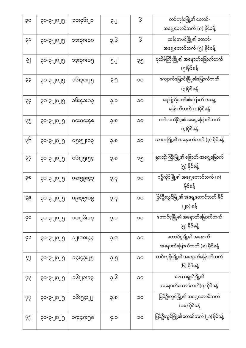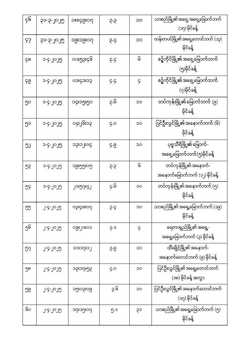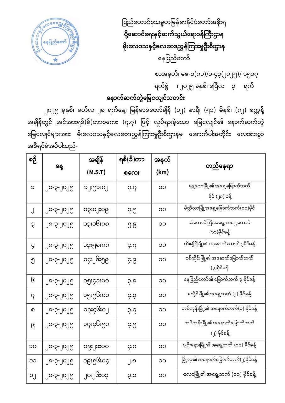 ၂၀၂၅ခုနှစ်မတ်လ၂၈ရက်မှယနေ့ဧပြီ၃ရက်နေ့အထိ လှုပ်ခတ်သွားသည့်ပြည်တွင်းမြေငလျင်များ စာရင်းကိုမိုးဇလမှထုတ်ပြန်မှုမှာ အောက်ပါအတိုင်းဖြစ်ပါတယ်။
