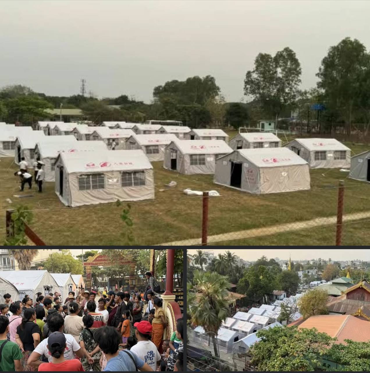 မန္တလေးမှ ငလျင်ဘေးသင့်ပြည်သူများအတွက် ယာယီနေရာချထားပေးရေးစခန်းတစ်ခုကို တရုတ်က ၂၀၂၅ ခုနှစ် ဧပြီလ (၂)ရက်နေ့ မွန်းလွဲ (၄)နာရီတွင် တည်ဆောက်ပေးထားပြီဖြစ်ကြောင်း သိရသည်။တရုတ်နိုင်ငံ ကျေးလက်ဒေသ ဖွံဖြိုးတိုးတက်ရေး ဖောင်ဒေးရှင်းက မန္တလေး ဒေသန္တရ အစိုးရခွင့်ပြုချက်ဖြင့် အောင်သုခဘုန်းကြီးကျောင်းဝင်းအတွင်း အဆိုပါယာယီစခန်းကို တည်ဆောက်ပေးခဲ့ခြင်းဖြစ်ကြောင်း သိရသည်။ယာယီတဲ အလုံး (၃၀)ပါဝင်သည့် အဆိုပါစခန်းကို တရုတ်နိုင်ငံမှ လှူဒါန်းထားသည့် ပစ္စည်းများဖြင့် တည်ဆောက်ပေးခဲ့ခြင်းဖြစ်ပြီး မြန်မာဘက်က နောက်ဆက်တွဲ စီမံခန့်ခွဲရေးကို တာဝန်ယူမည်ဟု သိရသည်။