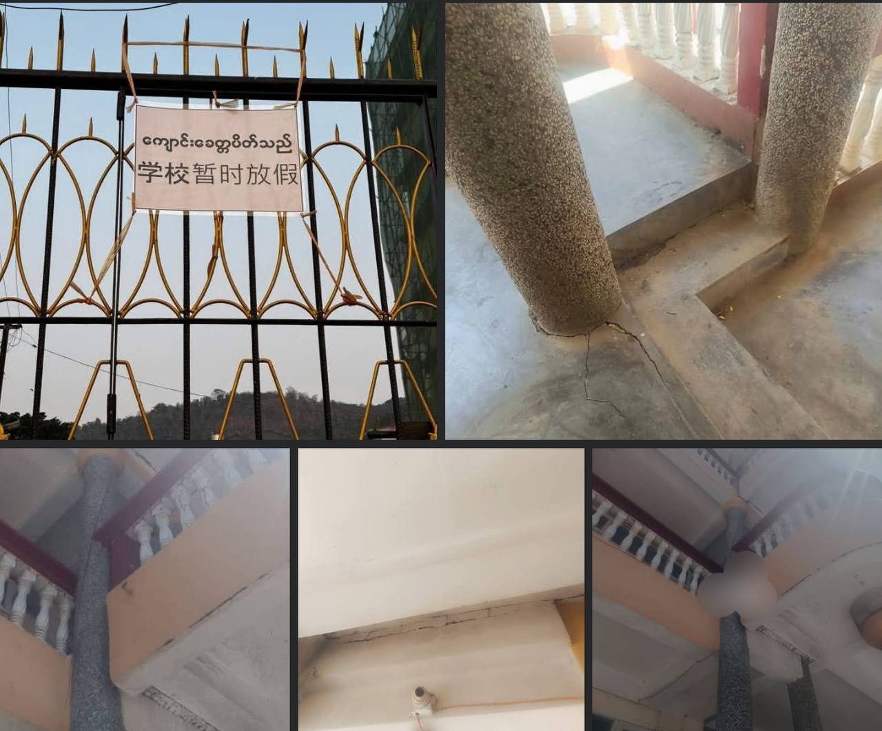 ရှမ်းပြည်နယ်မြို့တော်၊ တောင်ကြီးမြို့ ၊ ရေအေးကွင်းရပ်ကွက်ရှိ တုံဟွာတရုတ်ဘာသာနှင့် ကွန်ပျူတာသင်တန်းကျောင်းသည် ငလျင်ဒဏ်ကြောင့် ကျောင်းတိုင်တချို့နှင့် အုတ်နံရံများ အက်ကွဲမှုဖြစ်ပေါ် ခဲ့သော်လည်း ကျောင်းဆက်ဖွင့်နေသဖြင့် စိုးရိမ်မိကြောင်း ကျောင်း သားမိဘများ အကြံပြုချက်အရ ကျောင်းပိတ်လိုက်ခြင်းဖြစ်ကြောင်း သိရသည်။ကျောင်းတာဝန်ရှိသူများမှ ကျောင်း ဆောင် ကို နားလည်တတ်ကျွမ်းသူများဖြင့် စစ်ဆေးခြင်း လုပ်ငန်းများ ဆောင်ရွက်မည် ဖြစ်ပါသောကြောင့် ဧပြီလ ၃ ရက်မှ စ၍ ကျောင်းခေတ္တပိတ်ထားမည် ဖြစ်ပါကြောင်း အသိပေးခဲ့ခြင်း ဖြစ်သည်။