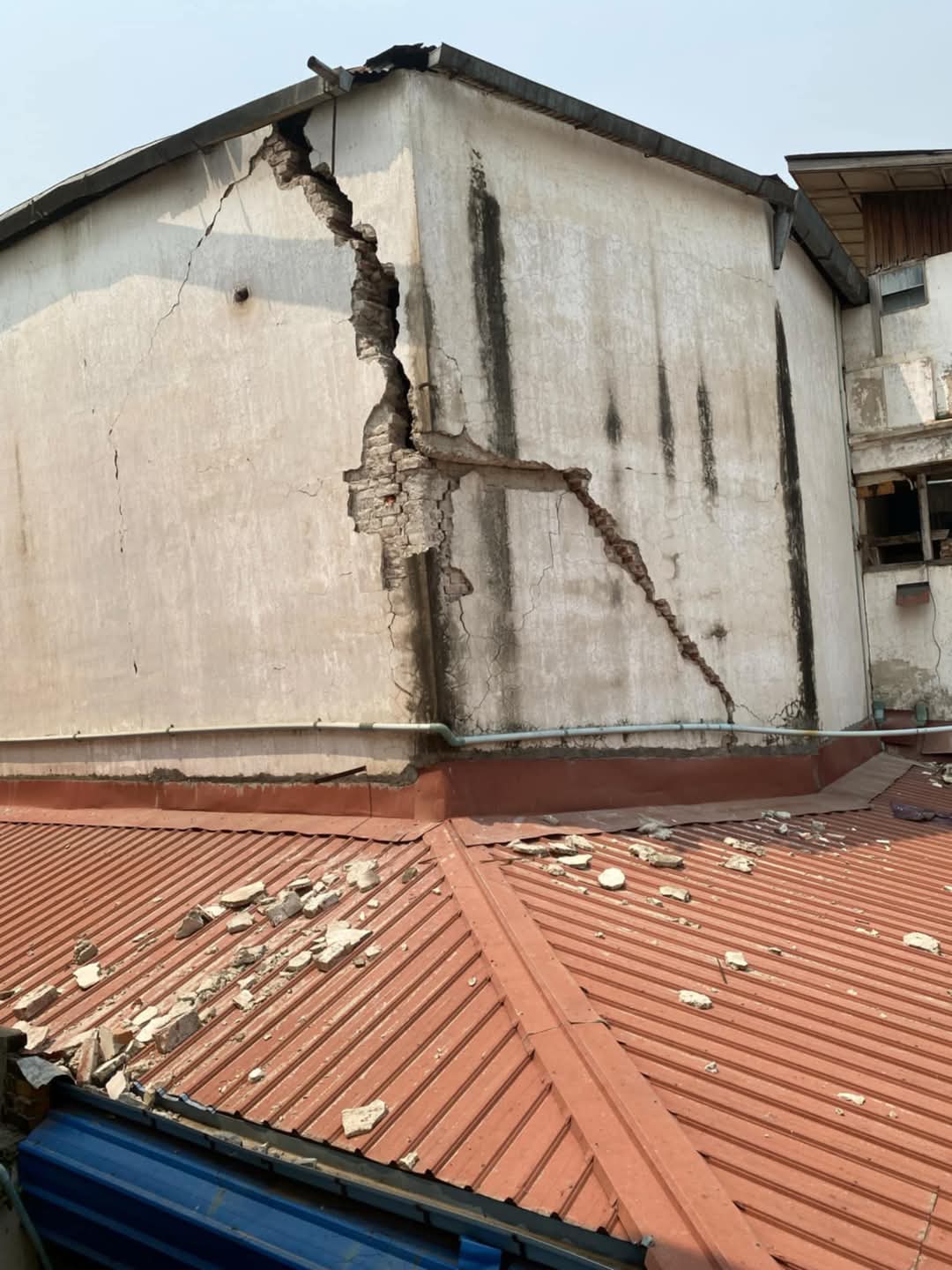 မန္တလေး ချမ်းအေးသာစံမြို့နယ် လက်ဆည်ကန်ရပ်က ဝင်းလိုက်ရုပ်ရှင်ရုံဟာ ငလျင်ဒဏ်ေကြာင့် ပြိုကျလုနီးပါးဖြစ်နေ