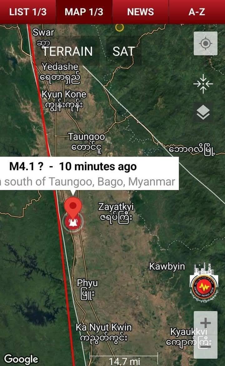 ယနေ့ ဧပြီလ ၅ရက် နေ့မနက်ပိုင်းမှ နေ့လယ် ၂နာရီ ကျော်အထိ တစ်ရက်ထဲ ငလျင်လေးကြိမ်ထိ ထပ်မံလှုပ်ခတ်ခဲ့ပြီး နောက်ဆက်တွဲငလျင် ကြိမ်ရေ၈၀အထိရှိလာကြောင်း မိုးလေဝသနှင့်ဇလဗေဒ ညွှန်ကြားမှုဦးစီးဌာနမှ သိရသည်။ ယင်းငလျင်ငယ်များမှာ မနက်ပိုင်း၆ နာရီ ၂၉မိနစ်၀၅ စက္ကန့်အချိန်တွင်ပြင်ဦးလွင်မြို့၏ အနောက်မြောက်ဘက် (၁၂) မိုင်ခန့်အကွာတွင် ရစ်(ခ်) တာစကေး ၃ ဒသမ ၄ အဆင့်ရှိ ငလျင်တစ်ခုနှင့် မနက် ၁၀ နာရီ ၄၁မိနစ်၃၀စက္ကန့်အချိန်၌ ပင်လောင်းမြို့၏ အနောက်တောင်ဘက် (၁၈) မိုင်ခန့်အကွာတွင် ဗဟိုပြု၍ ရစ်(ခ်) တာစကေး ၃ ဒသမ ၁ အဆင့်ရှိ အင်အားအနည်းငယ်ရှိသည့် ငလျင်တစ်ခု၊နေ့လယ် ၁၂ နာရီ ၂၀မိနစ်၈ စက္ကန့် အချိန်၌ မတ္တရာမြို့၏ အရှေ့မြောက်ဘက် (၁၇) မိုင်ခန့်အကွာတွင် ဗဟိုပြု၍ ရစ်(ခ်)တာစကေး၃ ဒသမ ၃အဆင့်ရှိ တစ်ခု၊နေ့လယ် ၁နာရီ ၉မိနစ် ၄၄စက္ကန့် အချိန်၌ဖြူးမြို့၏ မြောက်-အနောက်မြောက်ဘက် (၁၅) မိုင်ခန့် အကွာတွင် ဗဟိုပြု၍ ရစ်(ခ်)တာစကေး၄ ဒသမ ၁အဆင့်ရှိ တစ်ခုလှုပ်ခတ်ခဲ့ကြောင်း သိရသည်။
