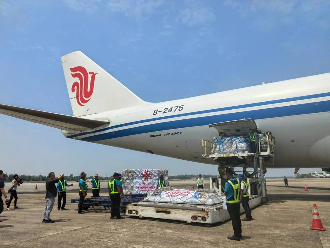 မြန်မာနိုင်ငံတွင်းရှိ ငလျင်ဒဏ်သင့်ဒေသများအတွက် တရုတ်နိုင်ငံအစိုးရမှပေးပို့သည့် လူသားချင်းစာနာထောက်ထားမှုဆိုင်ရာ အကူအညီပစ္စည်းများ ဟာ ဧပြီလ၅ ရက်က တတိယအသုတ်အဖြစ် ထပ်မံရောက်ရှိလာကြောင်း သိရပါတယ်။အဆိုပါ အကူအညီပစ္စည်းများတင်ဆောင်လာသည့် လေယာဥ်သည် ရန်ကုန်လေဆိပ်သို့ဆိုက်ရောက်ခဲ့ရာ တရုတ်နိုင်ငံအစိုးရမှ တတိယအသုတ်ပေးပို့သည့် အကူအညီပစ္စည်းများတွင် ရေသန့်စက် စနစ်(၁၀၄၈)စုံ၊ ခြင်ထောင်(၁၀,၀၀၀)လုံး၊ အရေးပေါ်ဆေးအိတ်(၁၅,၀၀၀)လုံးနှင့် ရွက်ဖျင်တဲအကြီးစား (၄၀၀)လုံးတို့ပါဝင်ပြီး ငလျင်ဒဏ်သင့်ဒေသများသို့ နေ့ချင်းပို့ဆောင်ပေးခဲ့ကြပါတယ်။