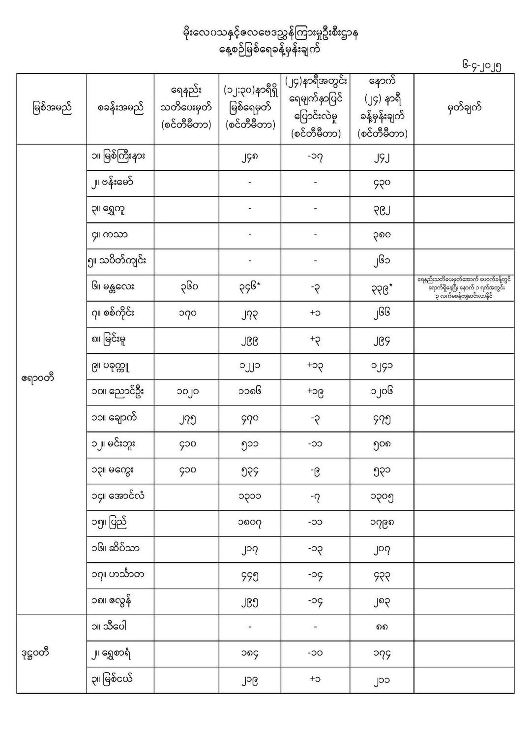၆-၄-၂၀၂၅ ရက်ယနေ့တွင်မိုးလေဝသနှင့်ဇလဗေဒညွှန်ကြားမှုဦးစီးဌာနမှ ထုတ်ပြန်သည့် နေ့စဉ်မြစ်ရေခန့်မှန်းချက်များမှာအောက်ပါအတိုင်းဖြစ်ပါတယ်။