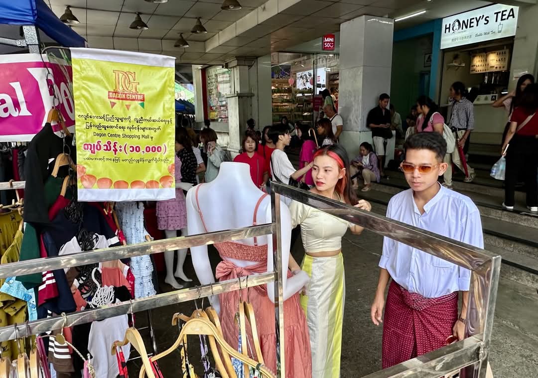 ငလျင်ဒဏ်ခံရသူတွေကို ကူညီဖို့ "နှစ်သိမ့်လက်တွဲ" ဈေးရောင်းပွဲကို ရန်ကုန်မြို့မှာ ပြုလုပ်နေပြီးဒီဈေးရောင်းပွဲကို ဧပြီလ ၃ ရက်ကနေ ယနေ့ဧပြီလ၆ ရက်နေ့အထိ ရန်ကုန်မြို့ မြေနီကုန်းရှိ ဒဂုံစင်တာမှာ ပြုလုပ်နေတာ ဖြစ်ပါတယ်။ဈေးရောင်းပွဲမှာ အဝတ်အထည်နဲ့ လူသုံးကုန်ပစ္စည်း အမျိုးမျိုးရောင်းချနေတာကို တွေ့ရပြီးဈေးရောင်းပွဲပြုလုပ်နေတဲ့ Dagon Center Shopping ကတော့ ငလျင်ဒဏ်ခံရသူတွေရဲ့ ကူညီကယ်ဆယ်ရေးနဲ့ ပြန်လည်ထူထောင်ရေးလုပ်ငန်းတွေအတွက် ပထမအဆင့်အနေနဲ့ ကျပ်သိန်း ၁၀၀၀၀ (တစ်သောင်း) ကို မတည်လှူဒါန်းထားတယ်လို့ ဈေးပွဲတော်မှာ ဗီနိုင်းတွေကပ်ပြီး ကြေညာထားပါတယ်။