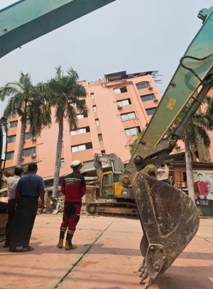 မန္တလေးမြို့၌မိုးသည်းထန်စွာရွာသွန်းပြီးနောက် ငလျင်ဒဏ်သင့်ဂရတ်ဝေါဟိုတယ်အဆောက်အဦမှာ ယနေ့(ဧပြီ ၆ ရက်) နံနက် ၁၁ နာရီခွဲခန့်တွင်ပြိုကျသွားခဲ့ကြောင်း ပရဟိတအဖွဲ့တစ်ဖွဲ့ထံမှသိရသည်။အဆိုပါဂရိတ်ဝေါဟိုတယ်မှာရှစ်ထပ်ရှိပြီး မြေညီထပ်နှင့်ပထမထပ်မှာငလျင်လှုပ်ခတ်ပြီးနောက် ပြိုကျကာ နှစ်လွှာမှရှစ်လွှာအထိကျန်ရှိပြီး သက်ဆိုင်ရာကယ်ဆယ်ရေးအဖွဲ့များက ယင်းဟိုတယ်ကို အန္တရာယ်ရှိအဆောက်အဦးအဖြစ်သတ်မှတ်ထားသည်။ယင်းသို့ရှာဖွေမှုများလုပ်ဆောင်းပြီးနောက် ဟိုတယ်အုပ်ချုပ်ရေးဘက်မှ ကယ်ဆယ်ရေးလုပ်ငန်းများကို ကန့်သတ်မှုများရှိလာသောကြောင့် ဟိုတယ်တွင်ပိတ်မိသူများ၏မိသားစုဝင်များက ဟိုတယ်ရှေ့လမ်း ဘေးတွင် လက်အုပ်ချီတောင်းပန်၍ ရှာဖွေမှုများဆက်လက်လုပ်ဆောင်ပေးရန် တောင်းဆိုသည့် ဗီဒီယိုဖိုင်လူမှုကွန်ရက်တွင်ပျံ့နှံ့ခဲ့ပြီးနောက် ဂရိတ်ဝေါဟိုတယ်၌ ရှာဖွေရေးလုပ်ငန်းများပြန်လည် လုပ်ဆောင်ခဲ့ခြင်းဖြစ်သည်ဟု ဒေသခံများကပြောသည်။