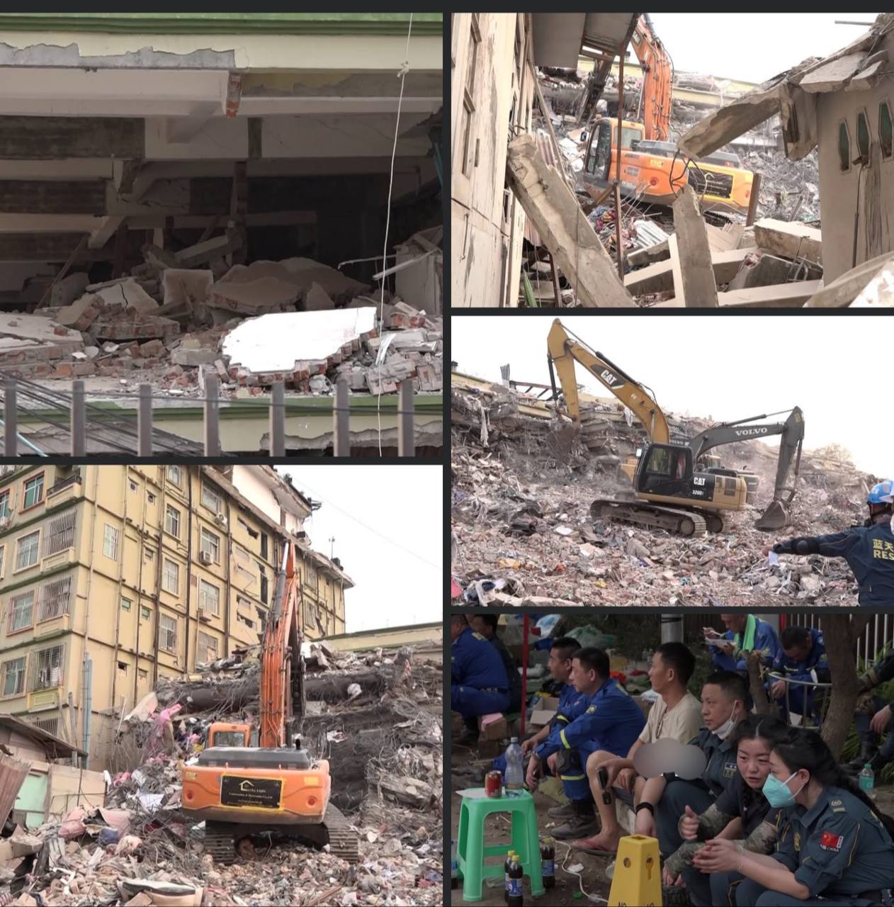 ငလျင်ဒဏ်ကြောင့် ပြိုကျပျက်စီးခဲ့တဲ့ မန္တလေးမြို့က Sky Villa အဆောက်အဉီးမှာ ရှာဖွေကယ်ဆယ်ဆယ်ရေး လုပ်ငန်းတွေကို ဆောင်ရွက်ရာမှာ နေ့ဆိုင်း၊ ညဆိုင်းတွေခွဲပြီး ရှာဖွေကယ်ဆယ်ရေးလုပ်ငန်းတွေကို ဆောင်ရွက် လျက်နေတယ်လို့သိရပါတယ်။Sky Villa အဆောက်အဉီး ပြိုကျခဲ့တဲ့ ပထမရက်ပိုင်းတွေမှာတော့ ရှာဖွေကယ်ဆယ်ဆယ်ရေး လုပ်ငန်းတွေကို နေ့၊ ည အဆိုင်းမခွဲပဲ ဆောင်ရွက်တာဖြစ်တယ်လို့ ဆိုပါတယ်။Sky Villa အဆောက်အဦး ပြိုကျပျက်စီးမှုမှာတော့ ရှာဖွေကယ်ဆယ်ရေးလုပ်ငန်းတွေကို မြန်မာနိုင်ငံ မီးသတ်တပ်ဖွဲ့နဲ့ တရုတ်နိုင်ငံက ရှာဖွေကယ်ဆယ်ရေး တပ်ဖွဲ့ဝင်တွေ ပူးပေါင်းပြီး ရှာဖွေကယ်ဆယ်ရေးလုပ် ငန်းတွေ ဆောင်ရွက်နေတာ ဖြစ်ပါတယ်။