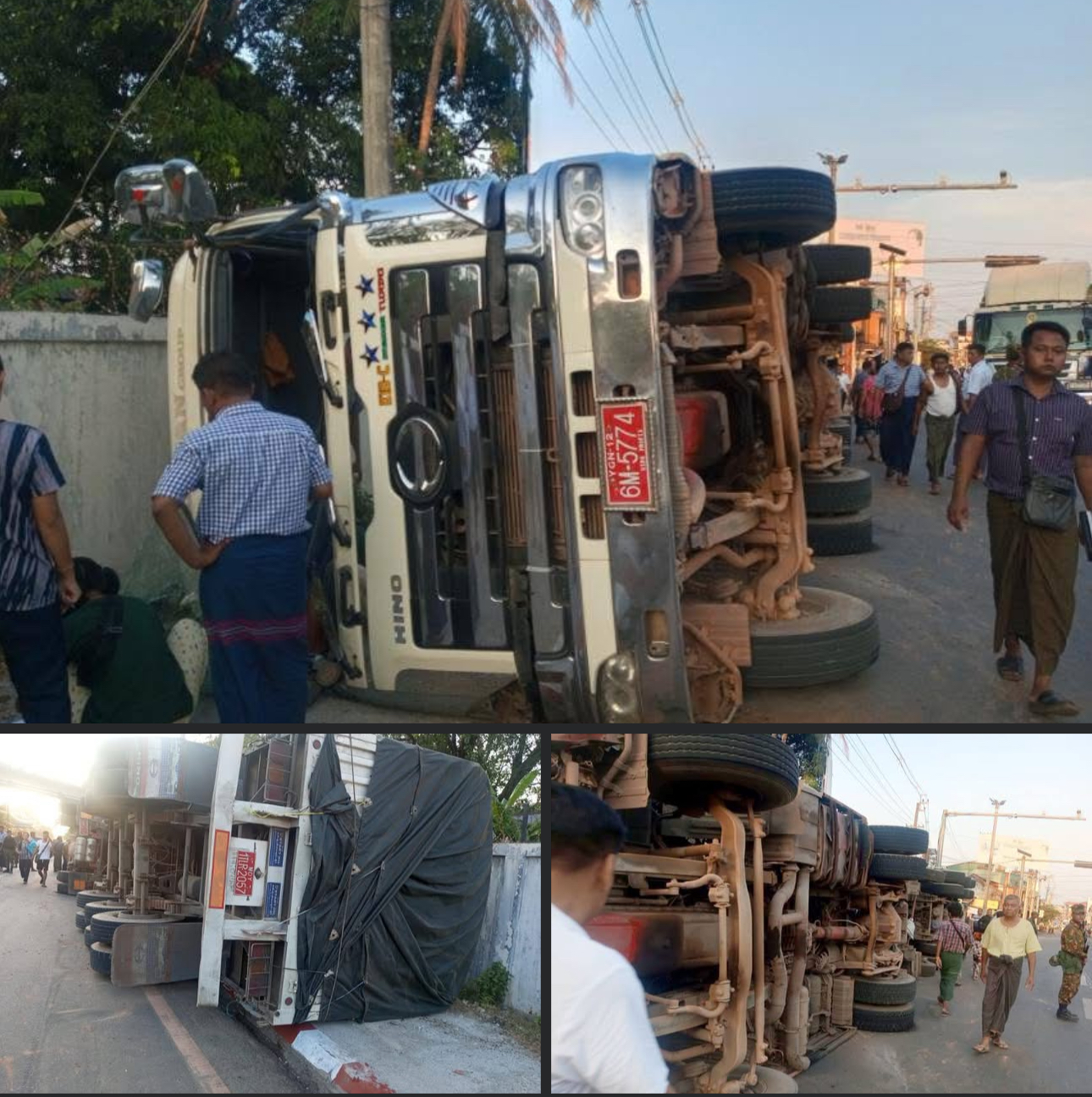 မွန်ပြည်နယ်၊ မော်လမြိုင်မြို့၊ ဒိုင်းဝန်းကွင်းရပ်ကွက်၊ မြို့မရဲစခန်းရှေ့တွင် ဧပြီလ ၆ ရက်နေ့ ညနေ ၅ နာရီခွဲခန့်က ကုန်တင်ယာဥ် တစ်စီး တိမ်းမှောက် ခဲ့ကြောင်း သိရသည်။