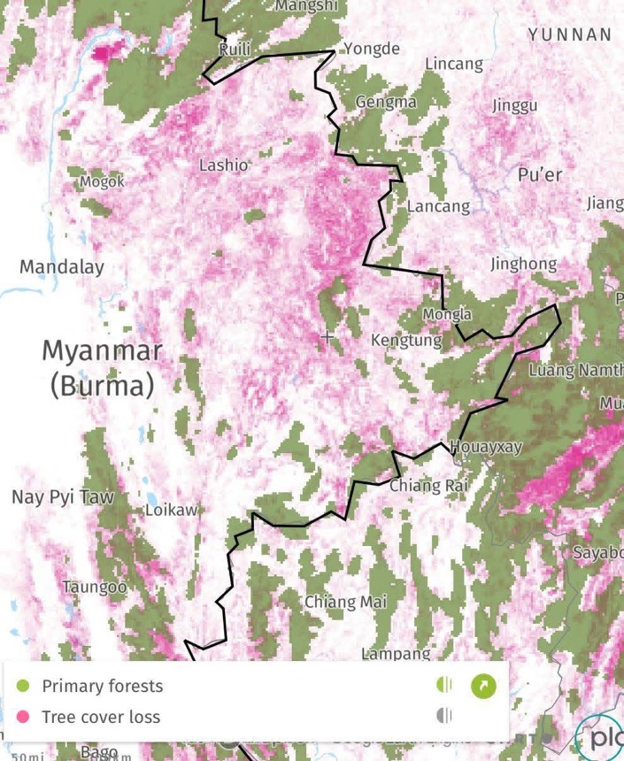 ရှမ်းပြည်တောင်ပိုင်း၊ မိုင်းပန်မြို့နယ်အတွင်း သစ်များကို တစ်ရက်လျှင် ၁၀ စီးမှ ၃၀ စီး ထုတ်ယူသယ်ဆောင်နေကြောင်း ဒေသခံများထံက သိရသည်။မိုင်းပန်မြို့နယ်အတွင်းပါဝင်သည့် သံလွင်မြစ်အနောက်ဘက်ကမ်းမှ ကျွန်း၊ ပိတောက်၊ သစ်မာ စသည့် သစ်မျိုးစုံကို ချိန်းဆော၊ ပတ်လွှ၊ လွှဝိုင်းအများအပြားဖြင့် အချောထည်အထိထုတ်ကာ သယ်ယူနေခြင်းဖြစ်ကြောင်း ဒေသခံတစ်ဦးက ပြောသည်။သစ်ကို အလုံးလိုက် အကြမ်းထည်ထုတ်ယူခြင်း မဟုတ်ဘဲ သစ်ဖြတ်လက်ကိုင်ချိန်းဆောများ၊ သစ်ရွေသည့် ပတ်လွှအကြီး ၁၀ ခုကျော်နှင့် ၂ ပေ ၃ ပေ လွှဝိုင်းသစ်ခွဲရုံ ၃၀ ကျော်ဖြင့် တရစပ် နေ့ညထုတ်နေခြင်း ဖြစ်ကြောင်း ဖြစ်စဉ်ကို သိရှိသည့် ဒေသခံတစ်ဦးက ပြောသည်။
