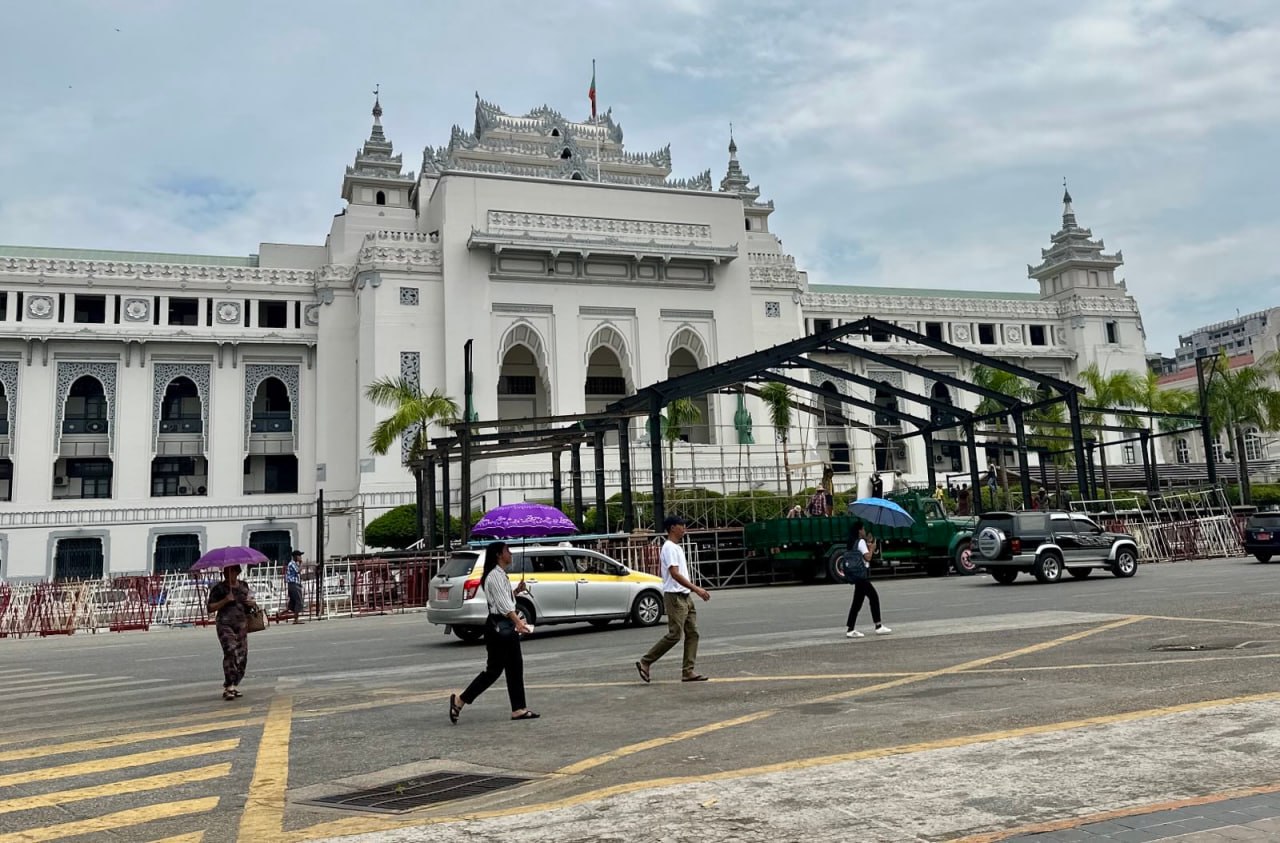 ရန်ကုန် မြို့တော်ခန်းမရှေ့မှာ ရေကစားမဏ္ဍာပ်နဲ့ လမ်းလျှောက် သင်္ကြန်အတွက် ပြင်ဆင်နေတာကို ရပ်တန့်ပြီး ပြန်လည်ဖျက်သိမ်းနေတာကို ၂၀၂၅ ခုနှစ် ဧပြီလ ၇ ရက်နေ့ တွေ့ရတာပါ။မြန်မာနိုင်ငံမှာ မတ်လ၂၈ ရက်နေ့က အင်အားပြင်း ငလျင်ကြောင့် လူ ၃၅၀၀ ကျော် သေဆုံးခဲ့ပါတယ်။ ဒါပေမဲ့ဧပြီလ ၅ ရက်နေ့အထိ သင်္ကြန်မဏ္ဍာပ်တွေကို ဆောက်လုပ်နေတာကြောင့် ဝေဖန်မှုတွေ ကြုံခဲ့ရပါတယ်။ ငလျင်ဘေးဒဏ်ကြောင့် ဒီနှစ်သင်္ကြန်ကို သီဆိုကခုန်တာတွေမပါဘဲ ကျင်းပမယ်လို့ ထုတ်ပြန်ထားပါတယ်။