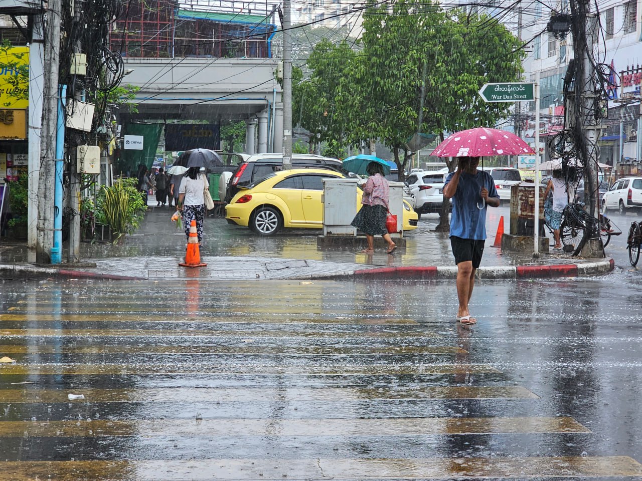 ရန်ကုန်တိုင်းဒေသကြီးရှိ မြို့နယ်တချို့တွင် ဧပြီ ၇ ရက်နေ့ နေ့လယ်ပိုင်းအချိန်မှစတင်ကာ မိုးရွာသွန်းခဲ့ကြောင်း မြင်တွေ့ရသည်။ မိုးလေဝသနှင့် ဇလဗေဒဦးစီးဌာနမှ ထုတ်ပြန်ချက်အရ ရန်ကုန်နှင့် တနင်္သာရီကမ်းရိုးတန်းတလျှောက် မိုးထစ်ချုန်းမိုးရွာနိုင်ခြင်းရှိသည်ဟု ယနေ့ မနက်ပိုင်းက သတင်းထုတ်ပြန်ထားသည်။၎င်းအပြင် မန္တလေး၊ မကွေး၊ ရှမ်းပြည်နယ်တောင်ပိုင်းနှင့်အရှေ့ပိုင်း၊ နေပြည်တော်အပါအဝင် စစ်ကိုင်းနှင့် ဧရာဝတီတိုင်းဒေသကြီးတို့တွင်လည်း နေရာစိပ်စိပ် မိုးရွာနိုင်ကြောင်း သိရသည်။