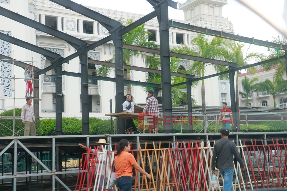 ရန်ကုန်မြို့တော်ခန်းမရှေ့ရှိ မြို့တော်ဝန်မဏ္ဍပ်နှင့် မဟာဗန္ဓုလပန်းခြံလမ်းရှိလမ်းလျှောက်သင်္ကြန်တို့အား ဖျက်သိမ်းလိုက်ကြောင်း သိရသည်။“မနေ့ကစပြီး ဖျက်တာ။ လမ်းလျှောက်သင်္ကြန်နဲ့ မြို့တော်ဝန်မဏ္ဍပ် ဘာမှမထားပါဘူး။ အကုန်လုံး ဖျက်သိမ်းလိုက်ပါပြီ။ ဖျော်ဖြေရေးအစီအစဉ်တွေ မပါတော့ဘူး။ ရေလောင်းတာလည်း ကိုယ့်အစီအစဉ်နဲ့ ကိုယ်လောင်းလို့ရတယ်။ ကျွန်တော်တို့ကတော့ ဘာမှမစီစဉ်ပါဘူး။ လမ်းလျှောက်သင်္ကြန်လည်း မရှိတော့ဘူး။ အပြင် Public ကို မရှိတော့ဘူး။ ရင်ပြင်မှာတော့ အတည်မပြုနိုင်သေးဘူး။ အလုံလမ်းမှာတော့ မဏ္ဍပ်အသေးလေးတွေ ဆောက်ထားတယ်။ အဲ့ဒါတွေကတော့ ဒီနေ့အထိ မဖျက်သေးဘူး။ အဲ့ဒါတွေက ဆက်ထားမလား မထားဘူးလားဆိုတာ မသိသေးဘူး” ဟု ရန်ကုန်မြို့တော်စည်ပင်သာယာရေးကော်မတီမှ တာဝန်ရှိသူတစ်ဦးက ပြောကြားသည်။