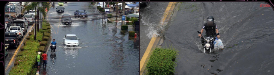 ထိုင်းနိုင်ငံ၊ Sam Prakarn ပြည်နယ် Pak Nam ခရိုင်တွင် တစ်နာရီကြာ မိုးသည်းထန်စွာ ရွာသွန်းပြီးနောက် ဧပြီလ ၇ ရက် တနင်္လာနေ့တွင် ရေလွှမ်းမိုးခဲ့သည်။ မိုးထပ်မရွာပါက နောက်ပိုင်းတွင် ပုံမှန်အခြေအနေသို့ ပြန်လည်ရောက်ရှိနိုင်ဖွယ်ရှိသည်ဟု သိရသည်။