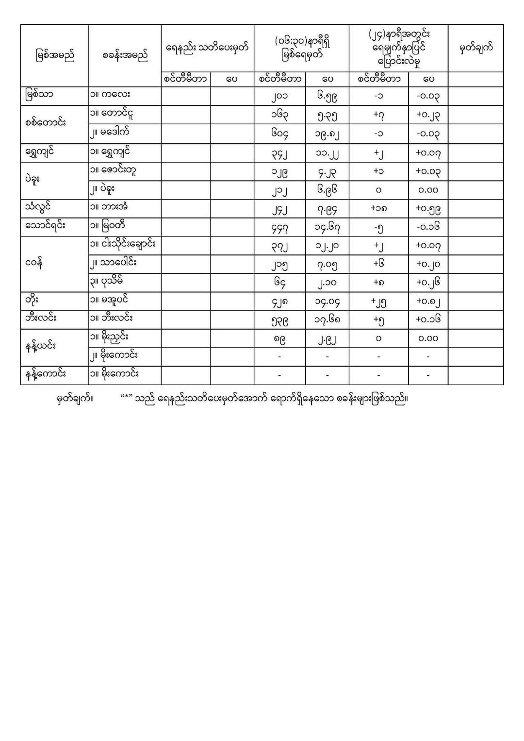 မိုးလေဝသနှင့်ဇလဗေဒညွှန်ကြားမှုဦးစီးဌာနမှ ၉-၄-၂၀၂၅ ရက်ယနေ့ နံနက်အချိန်တွင် တိုင်းတာရရှိသောနေ့စဉ် မြစ်ရေအခြေအနေများကို ထုတ်ပြန်မှုမှာ-အောက်ပါအတိုင်း ဖြစ်ပါတယ်။