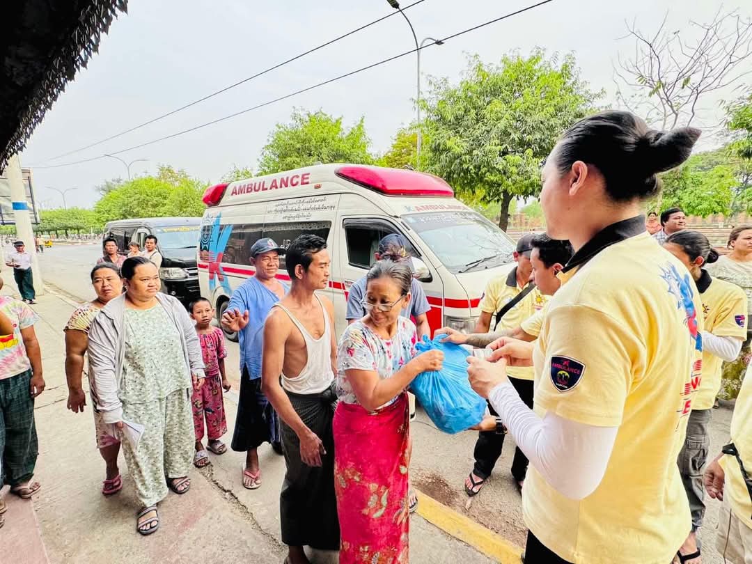 (၈-၄-၂၀၂၅) ရက်နေ့၌ အင်အားပြင်းငလျင် လှုပ်ခတ်ပြီး မီးလောင်မှုကြောင့် မန္တလေးတိုင်းဒေသကြီး၊ အောင်မြေသာဇံမြို့နယ်၊ မြောက်ပြင်ရပ်ကွက်ရှိ ရွှေကျင်မင်းကင်းကျောင်းတိုက် ငလျင်ယာယီဘေးရှောင် စခန်းတွင် ငလျင်ဘေးသင့် အိမ်ထောင်စု (၃၂)စုတို့အတွက် နာရေးကူညီမှုအသင်း(ရန်ကုန်)မှ ရုပ်ရှင်သရုပ်ဆောင် ထွန်းကိုကိုနှင့် အသင်းသားများမှ အိမ်ထောင်စု (၁)စုလျှင် ကူညီထောက်ပံ့ငွေ ၁၀၀,၀၀၀ကျပ်နှင့် အတူအခြား ထောက်ပံ့ပစ္စည်းများ ဖြစ်သော ခြင်ထောင်၊ ငါးသေတ္တာဘူးများ၊ ဓာတ်ဆား၊ လက်ဖက်အစုံ၊ ငါးပိဘူး၊ ကွတ်ကီးမုန့်၊ အမျိုးသမီးလစဉ်သုံးပစ္စည်းများအား ပေးအပ် လှူဒါန်းခဲ့ပါတယ်။