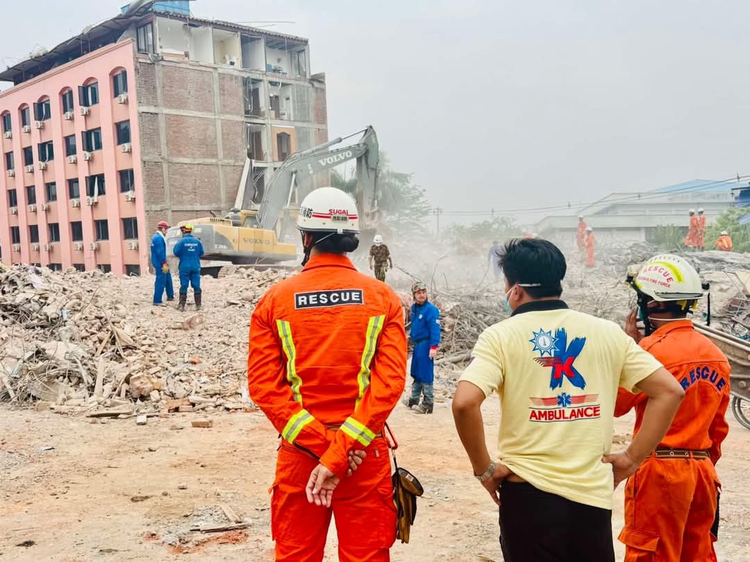 (၉-၄-၂၀၂၅) ရက်ယနေ့၌ အင်အားပြင်းငလျင် လှုပ်ခတ်မှုကြောင့် မန္တလေးတိုင်းဒေသကြီး၊ မန္တလေးမြို့ရှိ Great Wall Hotel အား စက်ယန္တယားများဖြင့် ရှင်းလင်းရာနေရာသို့ နာရေးကူညီမှုအသင်း(ရန်ကုန်)မှ ရုပ်ရှင်သရုပ်ဆောင် ထွန်းကိုကိုနှင့် အသင်းသားများမှ သွားရောက်၍ တာ၀န်ကျ အဖွဲ့သားများနှင့်အတူ ကူညီရှင်းလင်းရေး လုပ်ငန်းများ လုပ်ဆောင်ပေးခဲ့ကြပါတယ်။