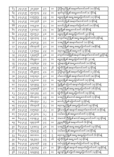 မိုးလေဝသနှင့်ဇလဗေဒညွှန်ကြားမှုဦးစီးဌာနမှထုတ်ပြန်သည့် မတ်လ၂၈ရက်မှယနေ့ဧပြီလ၉ရက်ထိနောက်ဆက်တွဲမြေငလျင်များစာရင်းများမှာ အောက်ပါအတိုင်းဖြစ်ပါတယ်။