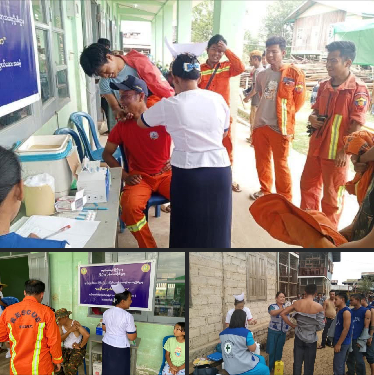 မေးခိုင်ကာကွယ်ဆေးထိုးပေးရာတွင် ယမန်နေ့ ဧပြီ(၈) ရက်၌ ညောင်ရွှေမြို့နယ်၊ အင်းလေးဒေသတွင် ငလျင်ဘေးသင့်သူများအား ကယ်ဆယ်ရေးလုပ်ငန်းများ ကူညီဆောင်ရွက်နေသော တပ်မတော်သားများ၊ ရဲတပ်ဖွဲ့ဝင်များနှင့် မီးသတ်တပ်ဖွဲ့ဝင်များအား မေးခိုင်ကာ ကွယ်ဆေးထိုးနှံပေးခဲ့ကြောင်း အသိပေးထားသည်။ထို့ပြင် မန္တလေးတိုင်း၊ တံတားဦးမြို့နယ်ရှိ ငလျင်ဘေးသင့်ပြည်သူများအားကိုလည်း တံတားဦးမြို့နယ် ပြည်သူ့ကျန်း မာရေးဦးစီးဌာန၊ အရေးပေါ်တုံ့ပြန်ဆောင်ရွက်ရေးအဖွဲ့နှင့် လပွတ္တာ အရေးပေါ်တုံ့ပြန်ဆောင်ရွက်ရေးအဖွဲ့တို့ပူးပေါင်း၍ ဘေးလုံကျောင်း ၊ ဥတည်ရွာ၊ ဈေးချိုရပ်၊ စကားအင်းရွာတို့မှ ငလျင်ဘေးသင့်သူ စုစုပေါင်း (၃,၆၅၀) ဦးအား မေးခိုင်ကာကွယ်ဆေးထိုးနှံခြင်းနှင့် ပြင်းထန်ဝမ်းပျက်ဝမ်းလျောရောဂါကာကွယ်ဆေး တိုက်ကျွေးခြင်းတို့ကို ဆောင်ရွက်ပေးခဲ့ကြောင်း သိရသည်။