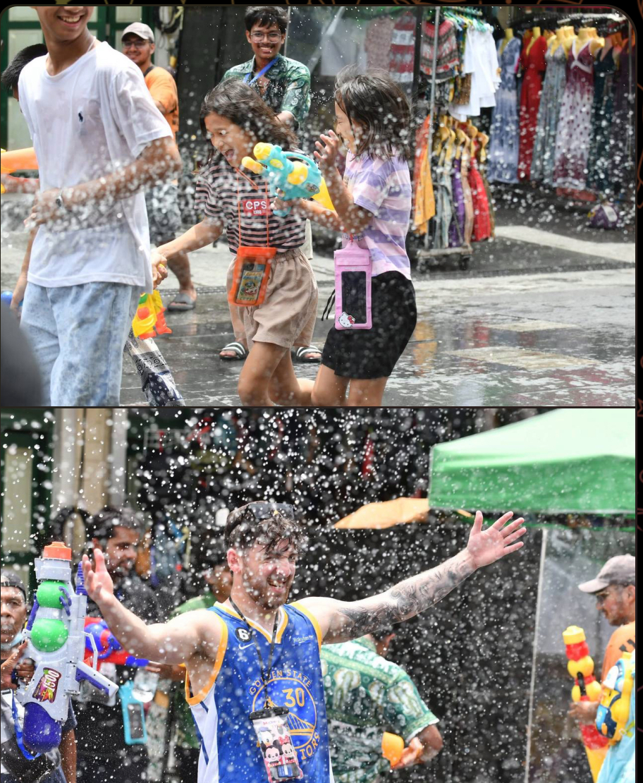 ထိုင်းနိုင်ငံ၊ ဘန်ကောက်မြို့ ခေါင်ဆန်လမ်းတွင် ဧပြီလ ၁၂ ရက် စနေနေ့ သင်္ကြန်ပွဲတော်အတွင်း ခရီးသွားဧည့်သည်များဖြင့် ရေကစားနေကြပြီး စည်ကားနေသည်။ ခေါင်ဆန်လမ်းသည် ဘန်ကောက်၏ သတ်မှတ်ထားသော ရေပက်သည့်နေရာ ၁၂ ခုအနက်မှ တစ်ခုဖြစ်ပြီး ရေပန်းအစားဆုံးဖြစ်သည်။ အခြားနေရာများမှာ Sanam Luang၊ Ratchadamnoen Road၊ Silom Road၊ Siam Square၊ Asiatique၊ Samyan၊ CentralWorld၊ ICONSIAM၊ Bangkok City Hall Plaza၊ Siam Park၊ Chang Chui နှင့် Banthat Thong တို့ဖြစ်သည်။