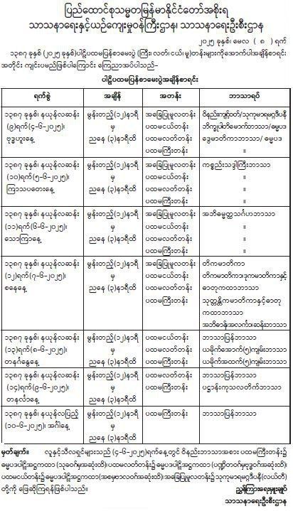 ငလျင်ကြောင့် ရပ်ဆိုင်းလိုက်ရသည့် အစိုးရဓမ္မာစရိယစာမေးပွဲနှင့် ပါဠိပထမပြန်စာမေးပွဲများ ပြန်လည်ကျင်းပသွားမည်