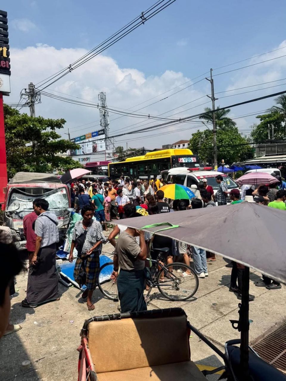 ရန်ကုန်တိုင်း၊ မြောက်ဒဂုံ ၊စစ်တောင်း City Mart ရှေ့တွင် Canter နှင့် Taxi Probox ယာဉ်တိုက်မှုဖြစ်ပွားခဲ့