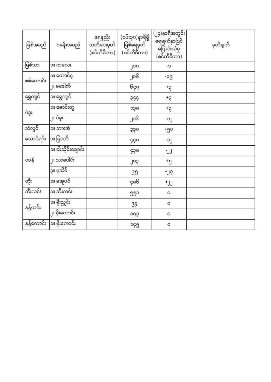 မိုးလေဝသနှင့်ဇလဗေဒညွှန်ကြားမှုဦးစီးဌာနမှထုတ်ပြန်သည့် ၁၀-၅-၂၀၂၅ ရက်နေ့ နံနက်(၀၆:၃၀)နာရီအချိန်တွင် တိုင်းတာရရှိသော မြစ်ရေအခြေအနေများမှာေအာက်ပါအတိုင်းဖြစ်ပါတယ်။