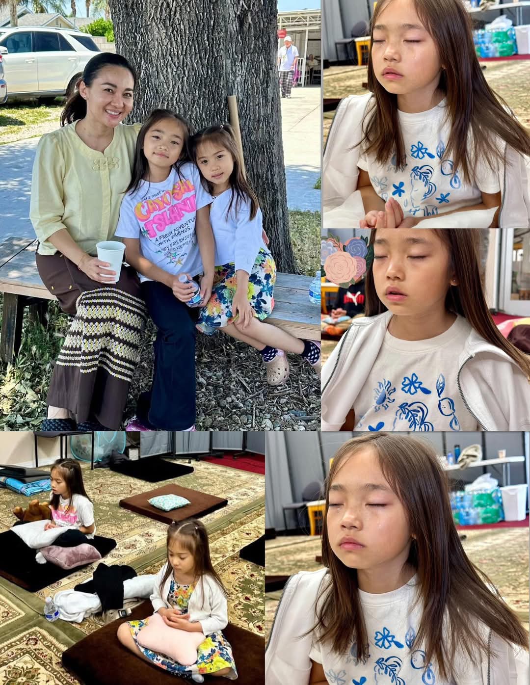 အောင်လံဆရာတော်ဘုရားကြီးရဲ့ လမ်းညွှန်မှုနဲ့ သမီးလေးတွေကို ရသလောက်တရားထိုင်ကာ ကုသိုလ်ယူစေခဲ့တာလည်းဖြစ်ပါတယ်။ သမီးကြီးလေး Chloe က ၂ နာရီကြာအောင် တရားထိုင်နိုင်ခဲ့ပြီး ပြီးခါနီးမှာမှ သူမဟာ မျက်ရည်တွေကျခဲ့တာကြောင့် ဘာလို့လဲလို့ မိခင်က မေးချိန်မှာ 'Happy' လို့ Chloe ကပြန်ဖြေခဲ့တာပါ။ မေမေကတော့ ကလေးအရွယ်လေးမို့ ဒီစိတ်ခံစားချက်ကို မသိပေမယ့် ဒါဟာ တရားပီတိမျက်ရည်ကျတာလို့ ဆိုခဲ့ပါတယ်။