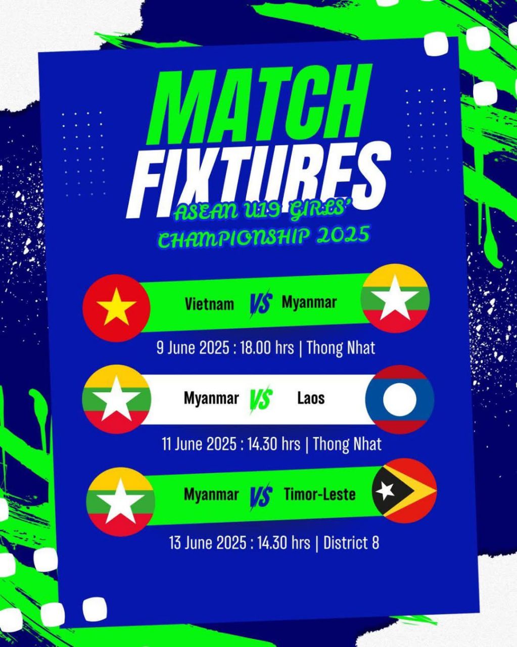 အာဆီယံ ယူ ၁၉ အမျိုးသမီး ချန်ပီယံရှစ် ပြိုင်ပွဲဝင်မည့် မြန်မာအသင်းသည် လာမည့် ဇွန် ၆ ရက်တွင် ပြိုင်ပွဲကျင်းပရာ ဗီယက်နမ်နိုင်ငံ၊ ဟိုချီမင်းမြို့သို့ ထွက်ခွာမည်ဖြစ်သလိုအာဆီယံ ယူ ၁၉ အမျိုးသမီး ပြိုင်ပွဲတွင် မြန်မာ အသင်းသည် အုပ်စု (A ) တွင် အိမ်ရှင် ဗီယက်နမ်၊ လာအို၊ တီမောတို့နှင့်အတူ ကျရောက်နေပြီး အုပ်စု (B)တွင် ထိုင်း၊ ကမ္ဘောဒီးယား၊ မလေးရှား၊ အင်ဒိုနီးရှားတို့ ပါဝင်ကာယူ ၁၉ မြန်မာ့လက်ရွေးစင် အမျိုးသမီးအသင်းသည် ဇွန် ၉ ရက်တွင် အိမ်ရှင် ဗီယက်နမ်၊ ဇွန် ၁၁ ရက်တွင် လာအို၊ ဇွန် ၁၃ ရက်တွင် တီမောအသင်းတို့နှင့် ယှဉ်ပြိုင် ကစားရမှာဖြစ်ပြီးယူ ၁၉ မြန်မာ့လက်ရွေးစင် အမျိုးသမီးအသင်းကို နည်းပြချုပ်အဖြစ် ဒေါ်သက်သက်ဝင်းက ကိုင်တွယ် မှာဖြစ်ပါတယ်။