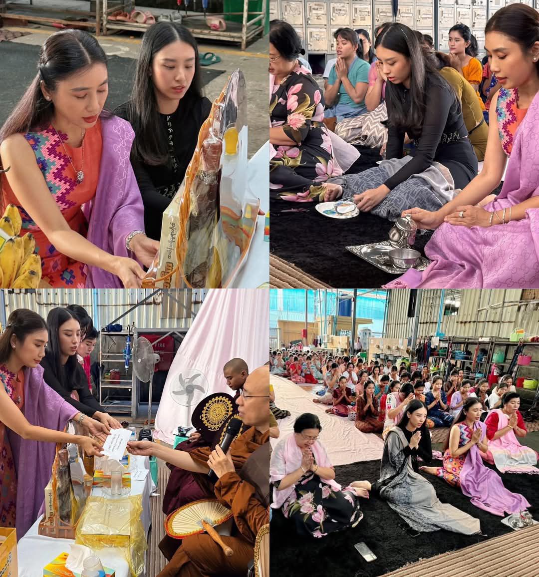 သရုပ်ဆောင် ခိုင်သင်းကြည်ဟာခင်ပွန်းဖြစ်သူရဲ့ အထည်ချုပ်စက်ရုံမှာ ဝါဆိုသင်္ကန်းကပ်လှူခဲ့