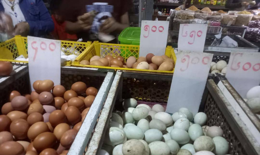 ၂၀၂၅ ဇူလိုင် ၂၄ ရက်၊ ရန်ကုန်ရှိ ရပ်ကွက်ဈေးများတွင် ကြက်ဥနှင့် ဘဲဥဈေးနှုန်းများမှာ ပုံမှန်အမြင့်ဈေးအတိုင်း ဆက်လက်တည်ရှိနေပြီး၊ ကြက်ဥတစ်လုံး ၄၀၀ ကျပ်မှ ၅၀၀ ကျပ်အထိ၊ ဘဲဥတစ်လုံး ၅၀၀ ကျပ်မှ ၆၅၀ ကျပ်အထိ ရှိကြသည်။ ငုံးဥ ၁၀ လုံးဈေးက ၁၂၀၀-၁၃၀၀ ကျပ်အထိ မြင့်တက်နေပြီး ဆေးဘဲဥတစ်လုံး ၉၀၀ ကျပ်ဈေးရှိသည်။ ပင်ရင်းဈေးများတွင် ကြက်ဥသည် ၃၇၀ ကျပ်မှ ၄၂၀ ကျပ်၊ ဘဲဥ ၃၅၀ ကျပ်မှ ၅၀၀ ကျပ်နှင့် ငုံးဥတစ်လုံး ၉၅ ကျပ်၊ ဆေးဘဲဥ ၆၅၀-၇၀၀ ကျပ်ရှိသည်။