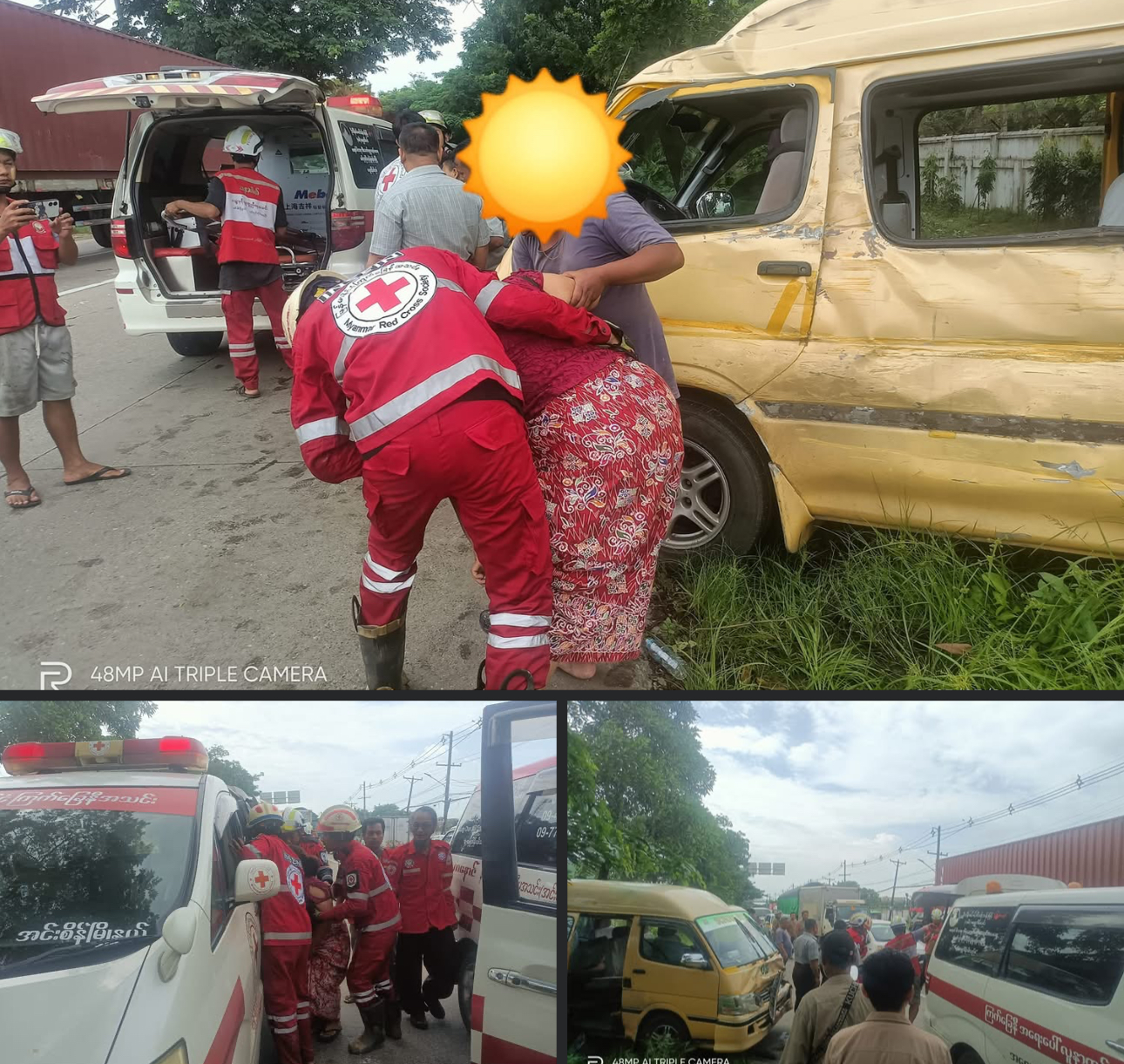 ရန်ကုန်တိုင်းဒေသကြီး၊အင်းစိန်မြို့နယ်၊ရွာမအနောက်ရပ်ကွက်၊ပုလဲလမ်းမပေါ်၊သံမဏိစက်ရုံအနီးတွင်ဇူလိုင်လ(၂၆)ရက်နေ့ ၊(၁၅:၀၅)နာရီအချိန်ခန့်တွင် ယာဉ်တိုက်မှုဖြစ်ပွါးပြီး ထိခိုက်ဒဏ်ရာရှိသည့် ကလေးငယ်တစ်ဦး၊အမျိုးသမီးတစ်ဦးနှင့်အမျိုးသားတစ်ဦး(မစိုးရိမ်ရ)လူနာများ မိတ်ဖက်ပရဟိတအသင်းများနှင့်ပူးပေါင်း၍ မြေပြင်တွင် ရှေးဦးပြုစုနည်းအတိုင်း စနစ်တကျပြုစုပေးခဲ့ကြပြီး အင်းစိန်ဆေးရုံသို့အချိန်မှီပို့ဆောင်ကူညီပေးခဲ့ကြောင်း သိရပါသည်။