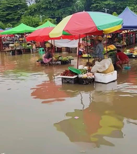 နေပြည်တော်တွင် မုန်တိုင်းနှင့် မိုးဆက်တိုက်ရွာသွန်းမှုကြောင့် စျေးအတွင်း ရေကျကျန်မှု၊ ဝယ်သူနည်းခြင်းတို့ကြောင့် စျေးသည်များ အရောင်းအဝယ်များလျော့နည်းပြီး ငွေကြေးအခက်အခဲများနှင့် ကြုံတွေ့နေရကြောင်း သိရသည်။ ရေဆင်းလမ်းကြောင်းများ ပိတ်ဆို့နေပြီး မိုးရေချည်းဖြင့် စျေးကွက်အတွင်း ရေပေါ်စျေးလိုဖြစ်နေသည့်အခြေအနေ ဖြစ်လာနေသည်။