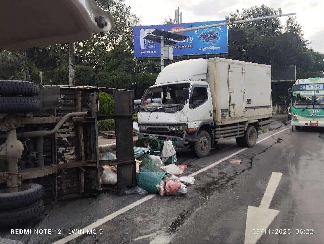 ရန်ကုန်၊ မရမ်းကုန်းမြို့တွင် စျေးကားနှင့် Box ကားတိုက် (၁)ဦး သေဆုံးကာ (၁၁)ဦးဒဏ်ရာရ