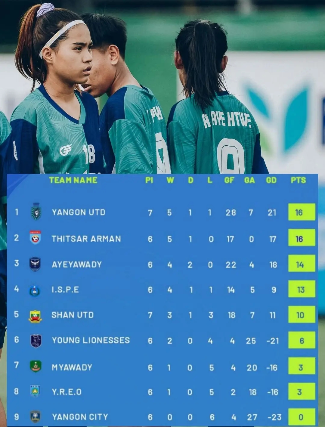 ၂၀၂၅-၂၆ မြန်မာအမျိုးသမီးလိဂ် ဘောလုံးပြိုင်ပွဲရဲ့အမှတ်ပေးဇယားအရ အသင်းရပ်တည်မှုမှာ-