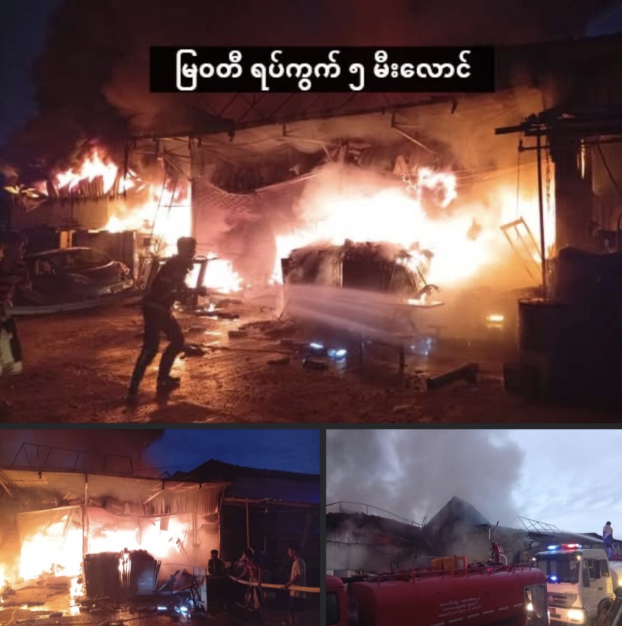 မြဝတီမှာ ဆိုင်ခန်းတစ်ခုမီးလောင်မှုဖြစ်ပွါး