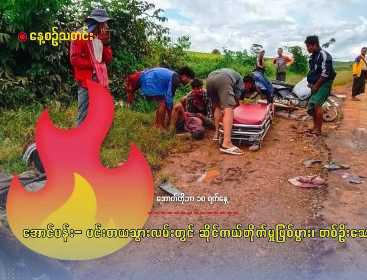 အောင်ပန်း- ပင်းတယသွားလမ်းတွင် ဆိုင်ကယ်တိုက်မှုဖြစ်ပွား၊ တစ်ဦးသေဆုံး