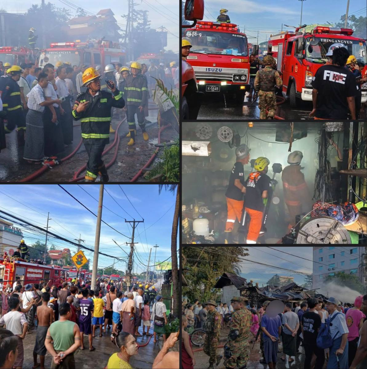 ရန်ကုန်၊ တောင်ဥက္ကလာပမြို့နယ်၊ ၅ ရပ်ကွက်၊ ဘေလီတံတားအဆင်း ပါရမီလမ်းမပေါ်ရှိ စစ်တပ်ရဲ့ လုံခြုံရေးကင်းတဲအနီးရှိ ဆိုင်ခန်းတွေ အောက်တိုဘာ ၂၀ ရက် ဒီကနေ့ ညနေ ၄ နာရီလောက်က မီးလောင်မှု ဖြစ်ပွားခဲ့ပါတယ်။ဘုရားမီးပူဇော်ရာ အခန်းနံပါတ် ၈ ကနေ စတင်မီးလောင်တာဖြစ်ပြီး သင်္ဘောဆေးဆိုင်၊ စက်ဘီးဆိုင်တွေကို ကူးစက်ခဲ့တာလို့ ဒေသခံက ပြောပါတယ်။သင်္ဘောဆေးဆိုင်မှာ တင်ဒါပုံးတွေ လောင်ကျွမ်းပေါက်ကွဲသံတွေလည်း ကြားခဲ့ပြီး တခဏအတွင်းမှာ အလျှင်အမြန်လောင်ကျွမ်းခဲ့တာဖြစ်ပါတယ်။