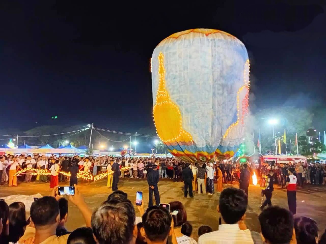 ၂၀၂၅ ခုနှစ် တန်ဆောင်မုန်းလပြည့်ညတွင် ရန်ကုန်မြို့၊ ပြည်သူ့ရင်ပြင်၌ ကျင်းပလျက်ရှိသော MSMEs ဈေးရောင်းပွဲတော်နှင့် ဂီတဖျော်ဖြေပွဲ၌ ယနေ့ နိုဝင်ဘာ ၄ ရက် ညပိုင်းတွင် မီးပုံးပျံများ လွှတ်တင်ခဲ့ရာ ပွဲတော်သို့ လာရောက်ကြည့်ရှုသူများဖြင့် အလွန်စည်ကားလျက်ရှိကြောင်း သိရသည်။