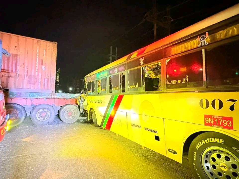 ရန်ကုန်တိုင်းဒေသကြီး၊ ရွှေပြည်သာမြို့နယ်၊ (၂၅)ရပ်ကွက်၊ အမှတ်(၄)လမ်းမကြီး ရွှေပြည်သာကွေ့ မီးပွိုင့်အနီးတွင် YBS 131 ယာဉ်လိုင်းမှ ယာဉ်တစ်စီးနှင့်တွဲကားတို့တိုက်မိပြီး YBS ယာဉ်မောင်းညပ်နေခြင်းကြောင့် ကယ်ဆယ်ရေးအဖွဲ့များမှ ကူညီကယ်ဆယ်မှုများလုပ်ခဲ့ရကြောင်း သွားရောက်ကူညီသူများထံမှသိရသည်။အဆိုပါယာဉ်တိုက်မှုမှာ နိုဝင်ဘာ ၂၅ ရက် ည ၁၂ နာရီဝန်းကျင်ကဖြစ်ပွားသည်ဟုဆိုထားကြပြီး ယာဉ်မောင်းအမျိုးသားနှင့် အမျိုးသမီးတစ်ဦးတို့ ဒဏ်ရာရရှိသွားခဲ့ရာ ရွှေပြည်သာမြို့နယ်မီးသတ်စခန်းမှ မီးသတ်ကယ်ဆယ်ရေးအဖွဲ့များနှင့် လူမှုကူညီရေးအသင်းများက သွားရောက်ကူညီ၍ အင်းစိန်ပြည်သူ့ဆေးရုံကြီးသို့ ပို့ဆောင်ပေးခဲ့ကြရသည်။ထိုနေရာအနီးတွင် ယာဉ်တိုက်မှုများဖြစ်ပွားလေ့ရှိတတ်ပြီး လွန်ခဲ့သော ၂၀၂၄ ခုနှစ် ဒီဇင်ဘာလအတွင်းကလည်း YBS ယာဉ်တစ်စီးယာဉ်တိုက်မှုဖြစ်ကာ လူညပ်နေ၍ကယ်ထုတ်ရသောအဖြစ်မျိုးဖြစ်ပွားခဲ့ဖူးကြောင်း သိရသည်။တွံတေး-လှိုင်သာယာကားလမ်းတွင်လည်း ယနေ့(နိုဝင်ဘာ ၂၆ ရက်) နံနက် ၄ နာရီ ၄၅ မိနစ်အချိန်ခန့်က တမာတကောအောက်ထိပ်ကျေးရွာအနီးတွင် ယာဉ်တိုက်မှုဖြစ်ခဲ့ရာ လူညပ်နေခြင်းကြောင့် ကူညီကယ်ဆယ်မှုများ လုပ်ဆောင်ခဲ့ရကြောင်း သိရသည်။ထိုဖြစ်ရပ်တွင် အသက် ၂၆ နှစ်အရွယ် အမျိုးသားတစ်ဦးမှာခြေကျိုးသွားခဲ့ပြီး အသက် ၃၀ အရွယ်အမျိုးသားမှာ ခြေကျိုး၊ နံရိုးကျိုး၊ ခေါင်းကွဲ ဒဏ်ရာများရရှိခဲ့ကြောင်းလည်း တွံတေးအခြေစိုက်စိတ္တသုခအသင်းမှ သိရသည်။