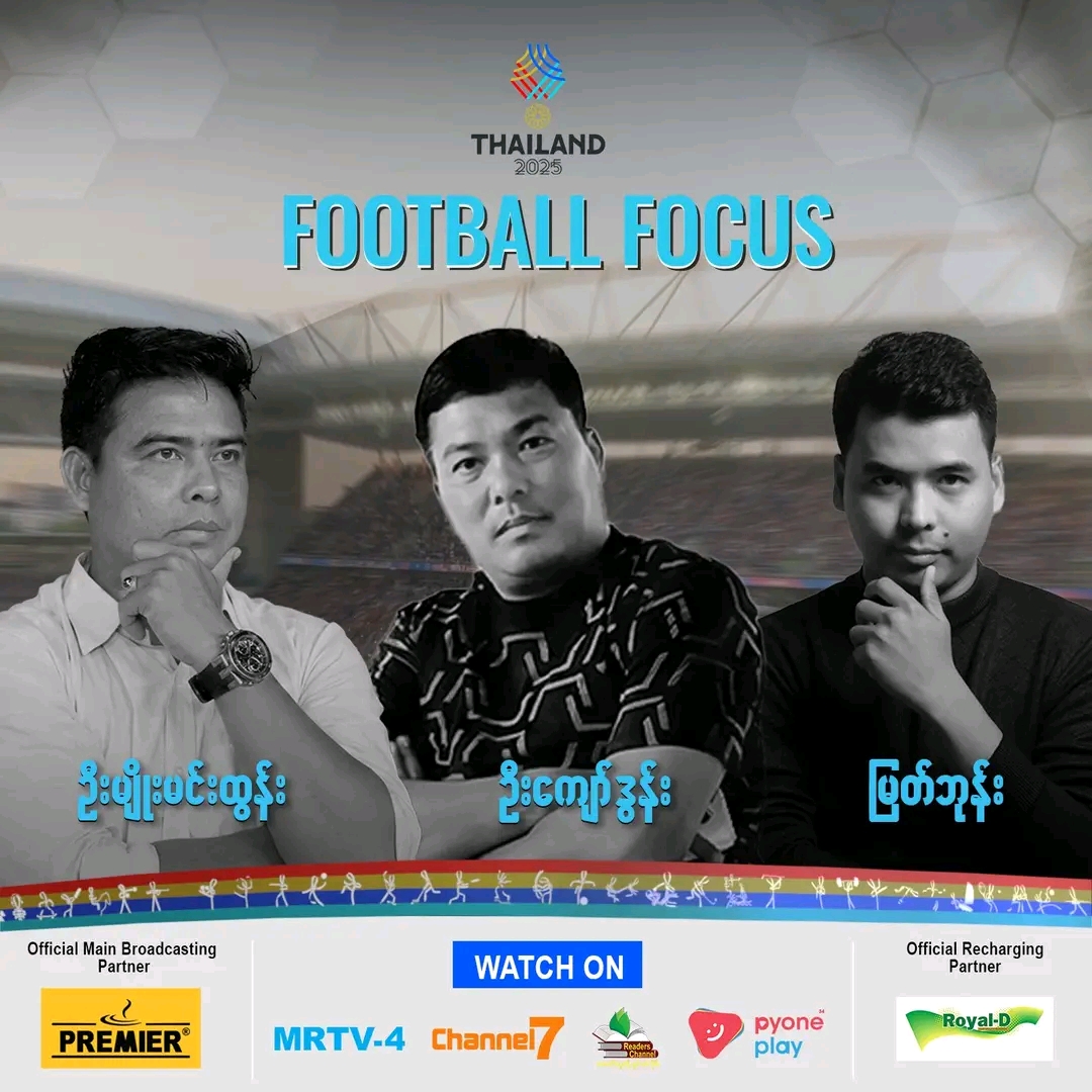 မနက်ဖြန်မှာ စတင်ယှဉ်ပြိုင် ကစားကြမယ့် 2025 ဆီးဂိမ်းပြိုင်ပွဲ မြန်မာ အမျိုးသား၊အမျိုးသမီးအသင်းတို့ရဲ့ ဘောလုံးပွဲစဉ်များကို SEA Games Football Focus အစီအစဥ်ကနေတင်ဆက်သူ မြတ်ဘုန်း နဲ့အတူ ဆွေးနွေးတင်ဆက်ပေးသွားကြမယ့် သူများကတော့ မြန်မာဘောလုံး ပရိသတ်တွေနဲ့ ရင်းနှီးပြီးသား ဖြစ်တဲ့ ဦးမျိုးမင်းထွန်း (ဟံသာဝတီယူနိုက်တက်အသင်း နည်းပြချုပ်) နှင့် ဦးကျော်ဒွန်း (ရန်ကုန်ယူနိုက်တက်အသင်း နည်းပြချုပ်ဟောင်း) တို့ဖြစ်ပါတယ်။SEA Games Football Focus အစီအစဥ် ကိုတော့ မြန်မာဘောလုံးအသင်းတွေရဲ့ ပွဲစဥ်တွေ မစတင်ခင် အချိန်တိုင်းမှာ MRTV-4 နဲ့ Channel 7 ရုပ်သံလိုင်းတို့ကနေ တိုက်ရိုက်